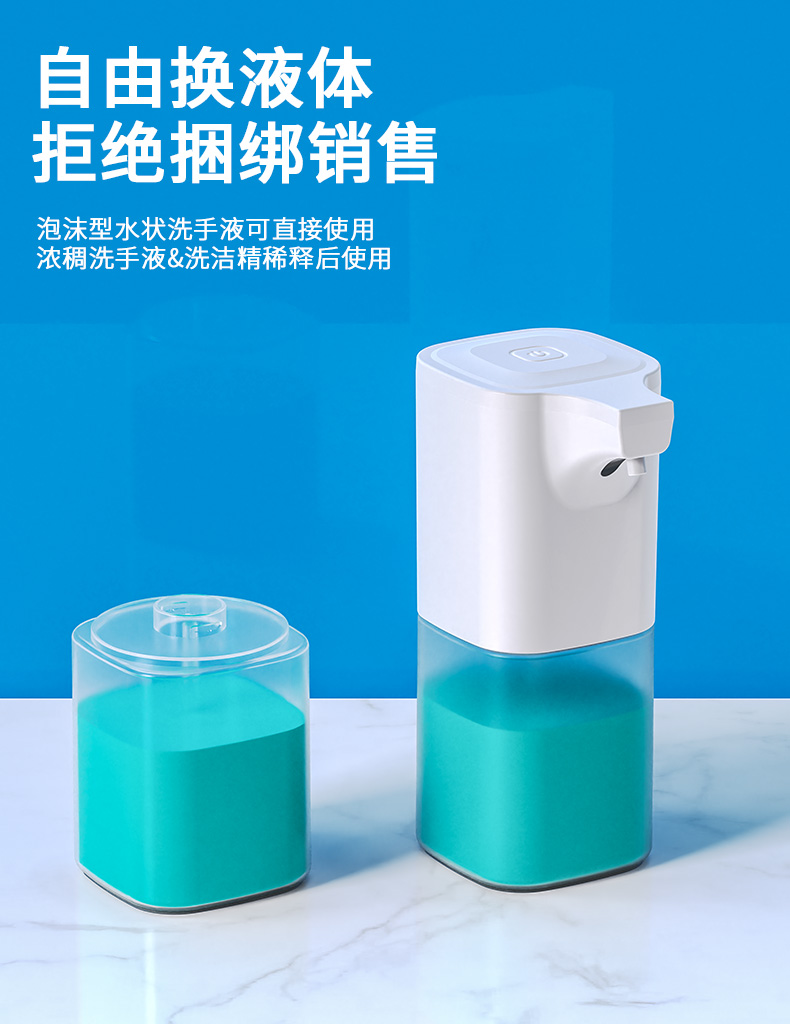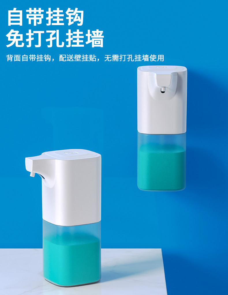 Automatic foam dispenserWith hooks, no need to drill holes to hang on the wallFree to change the liquid, no bundled salesWaterproof, can be placed anywhereFour levels of adjustable foam dispensing