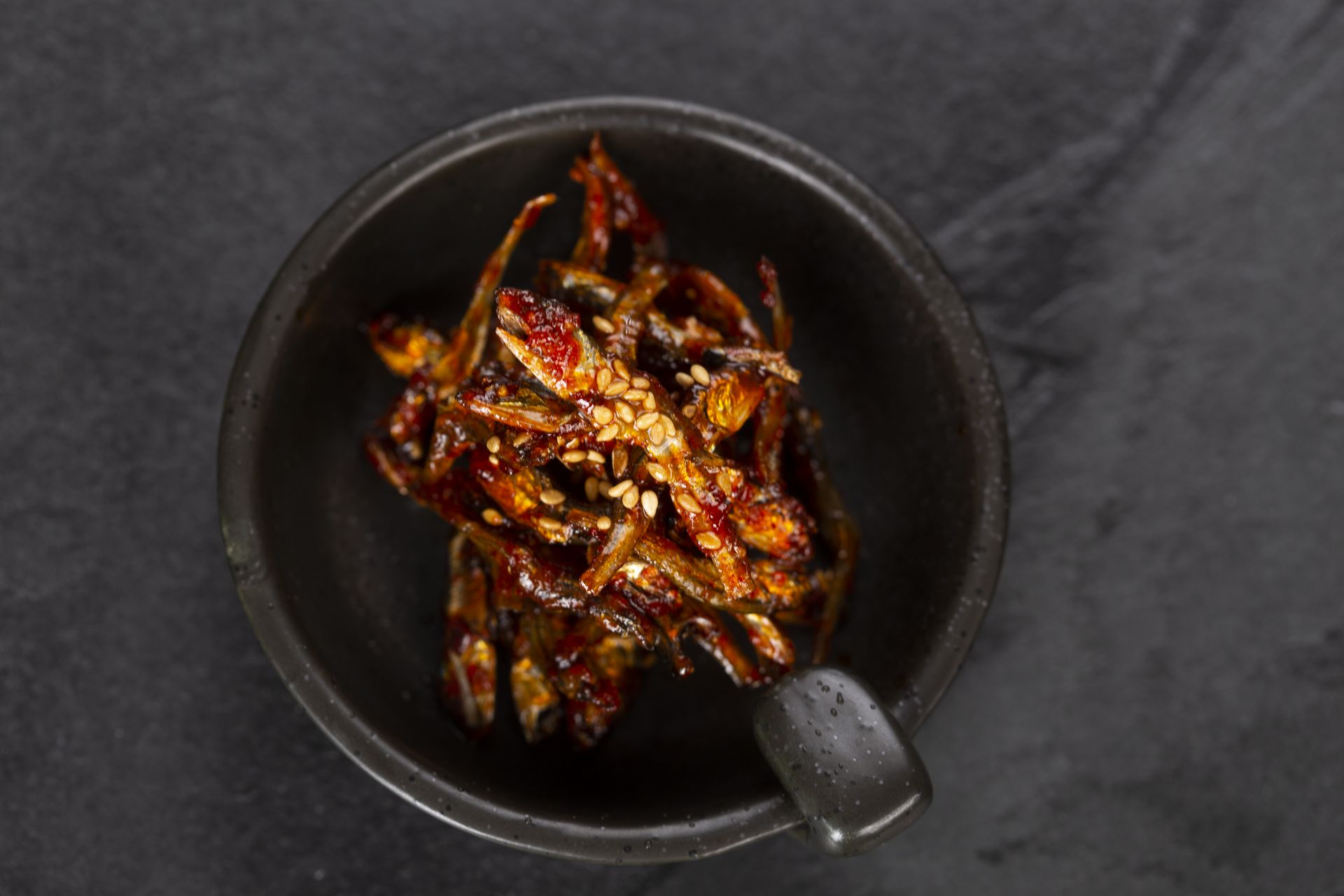 멸치, 양파, 당근, 청양고추, 마늘, 간장, 고추장, 설탕, 참기름