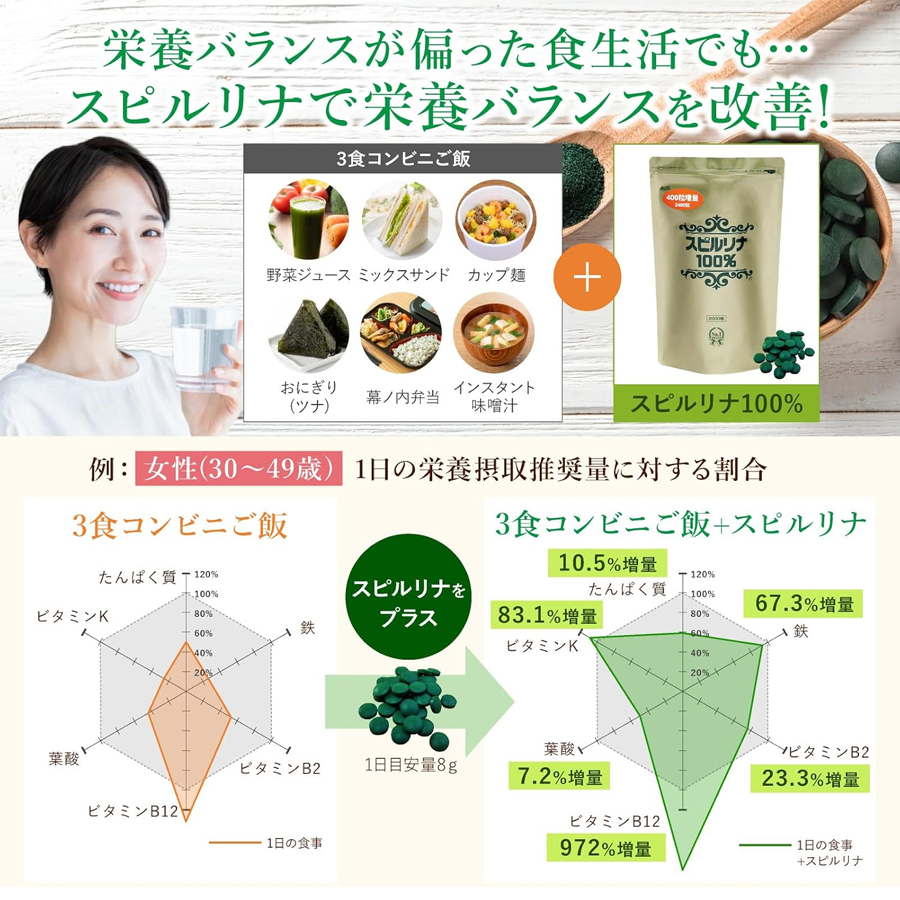 Spirulina 100% Pure (2000 + 400 Bonus)Tablets/ 1 pack