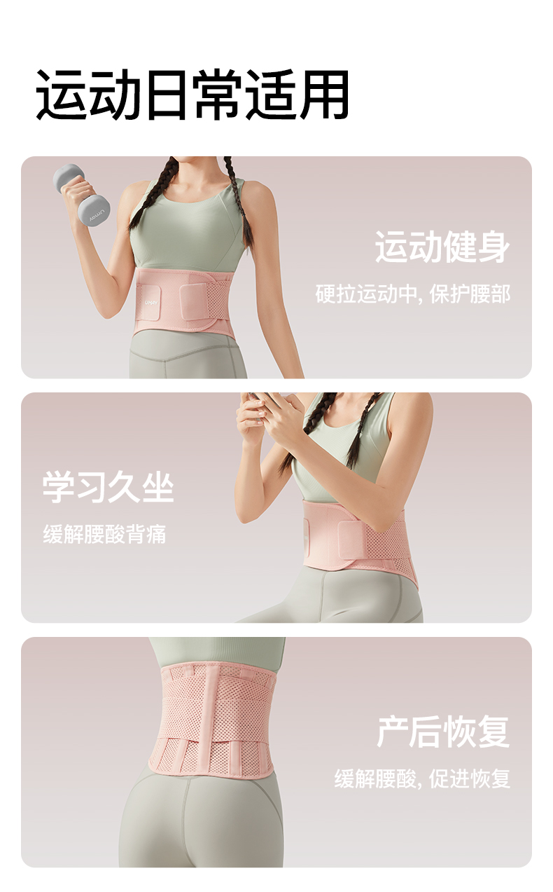 運動護腰帶透氣支撐健身護腰女士跑步深蹲收腹 粉M碼 1 份