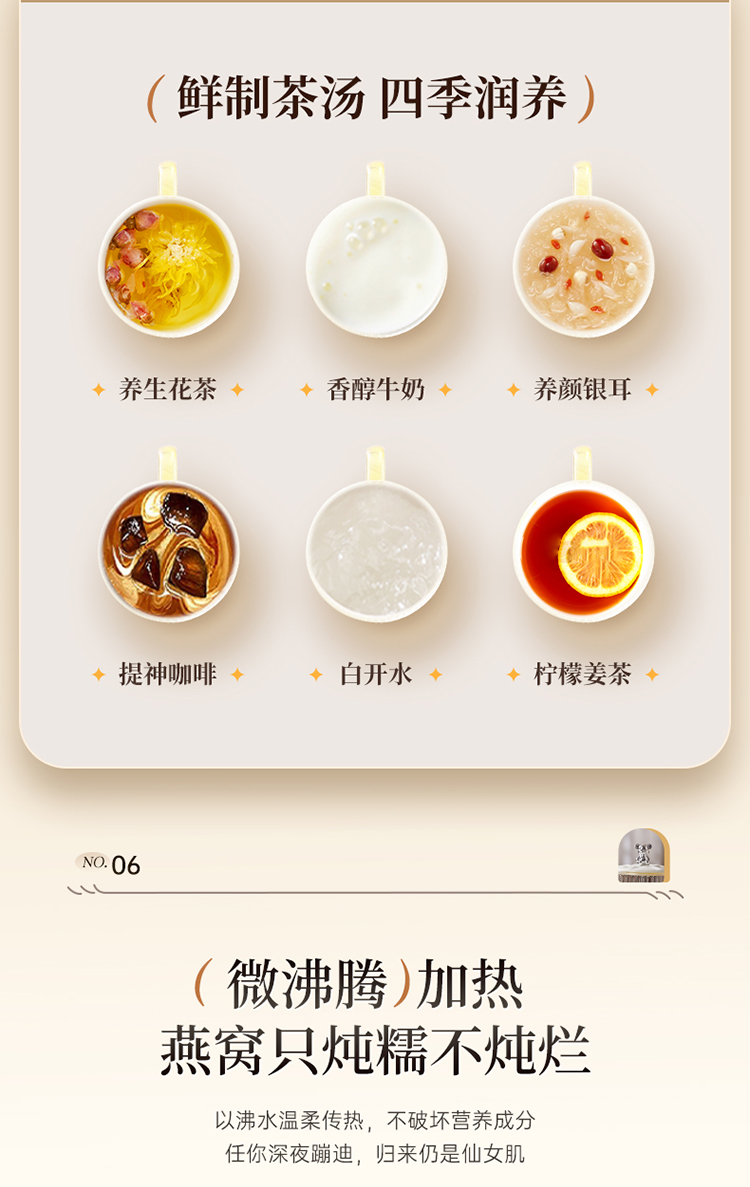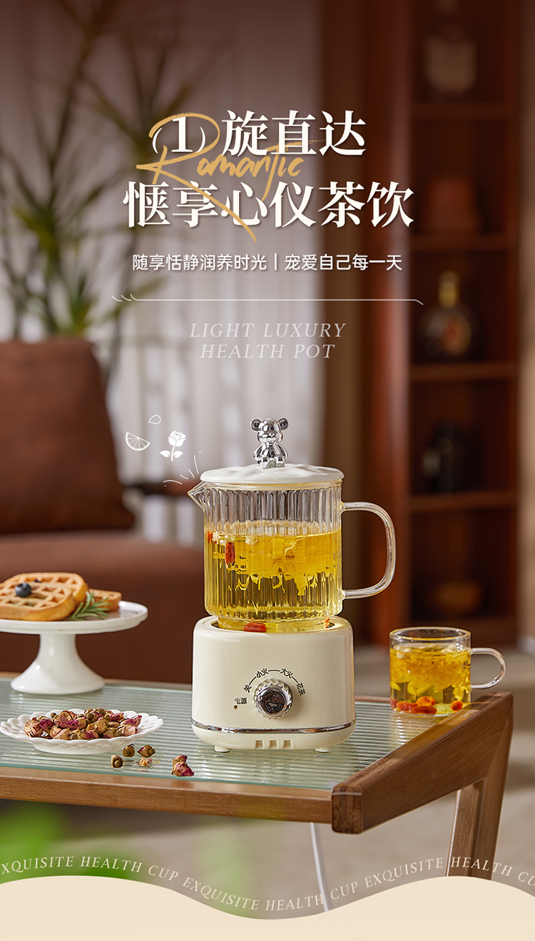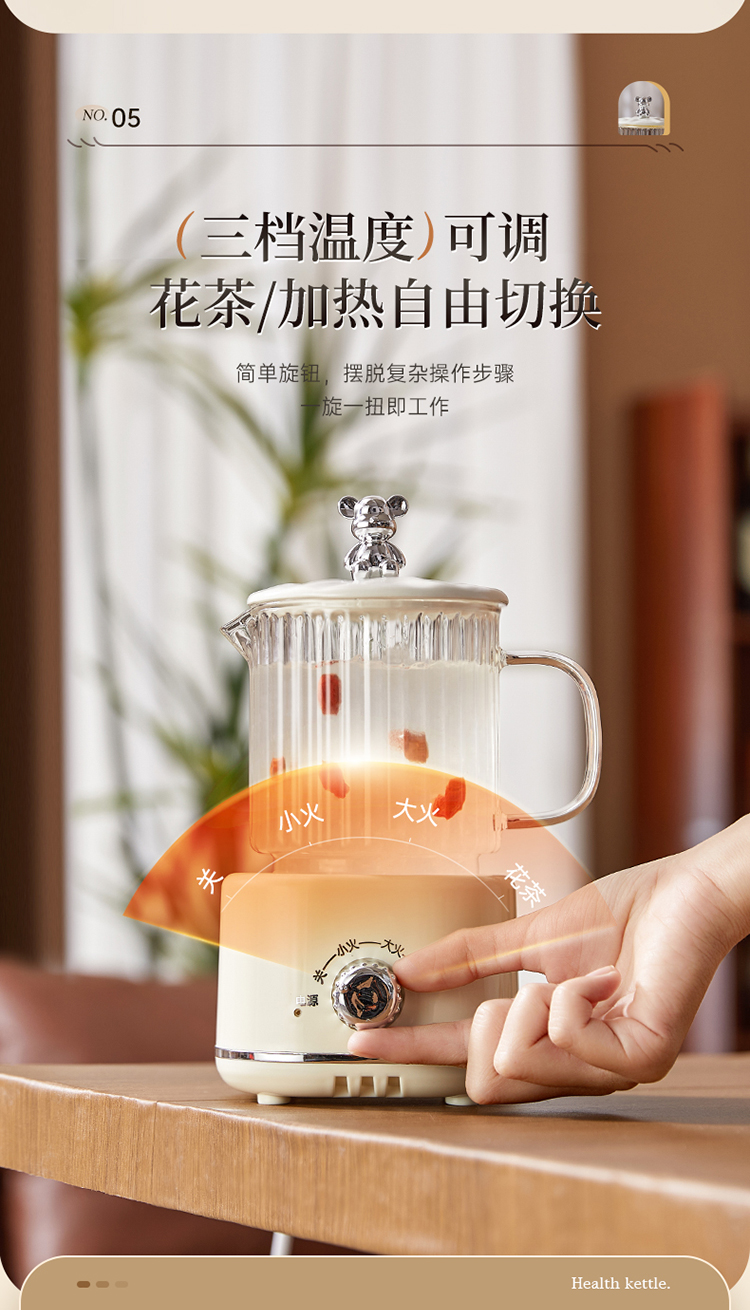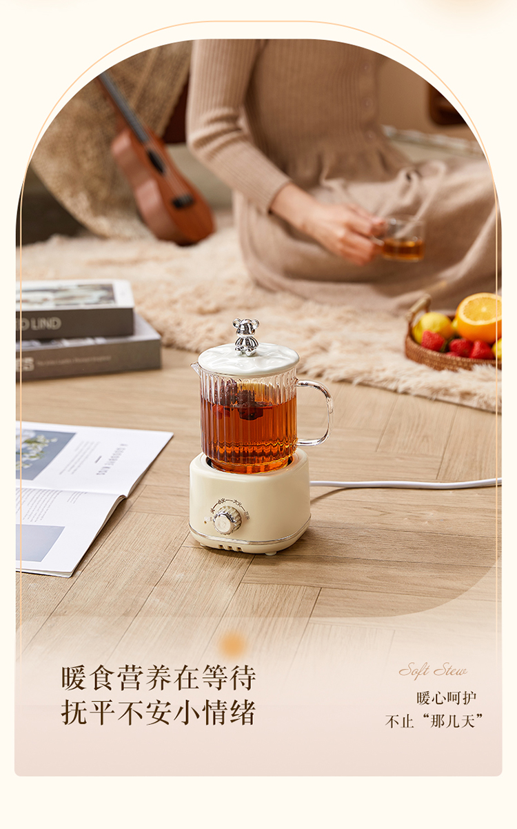 When using the product, set the temperature to the highest level (high heat) first. Wait until the water boils and ensure it does not overflow before switching to the lowest setting (low heat) for heat preservation. The "Herbal Tea" mode is a simmering function—after boiling for a while, it will pause intermittently. :) Happy brewing!
