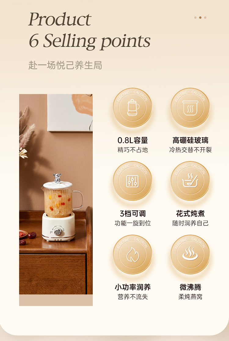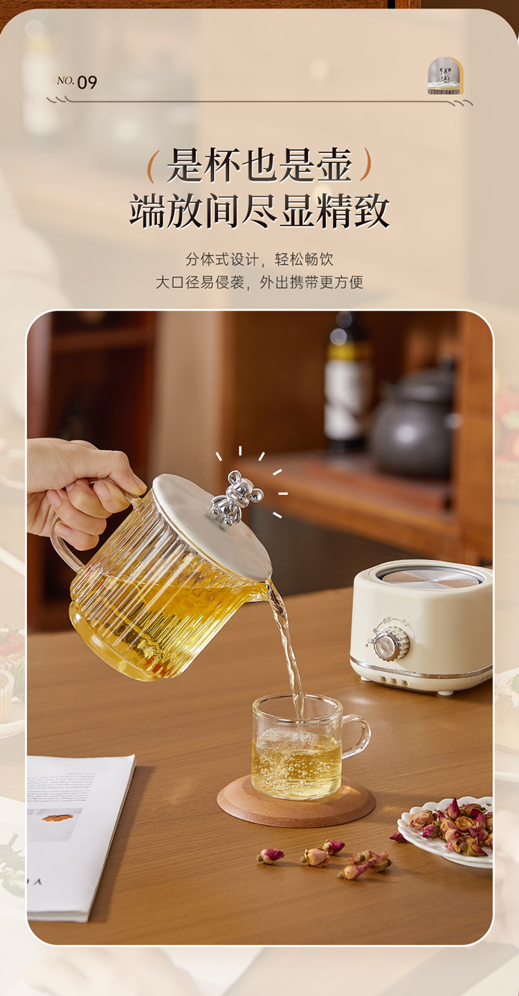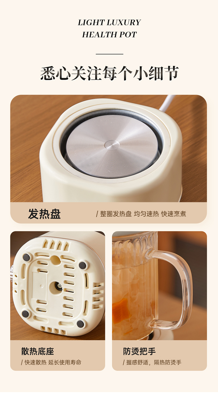 When using the product, set the temperature to the highest level (high heat) first. Wait until the water boils and ensure it does not overflow before switching to the lowest setting (low heat) for heat preservation. The "Herbal Tea" mode is a simmering function—after boiling for a while, it will pause intermittently. :) Happy brewing!