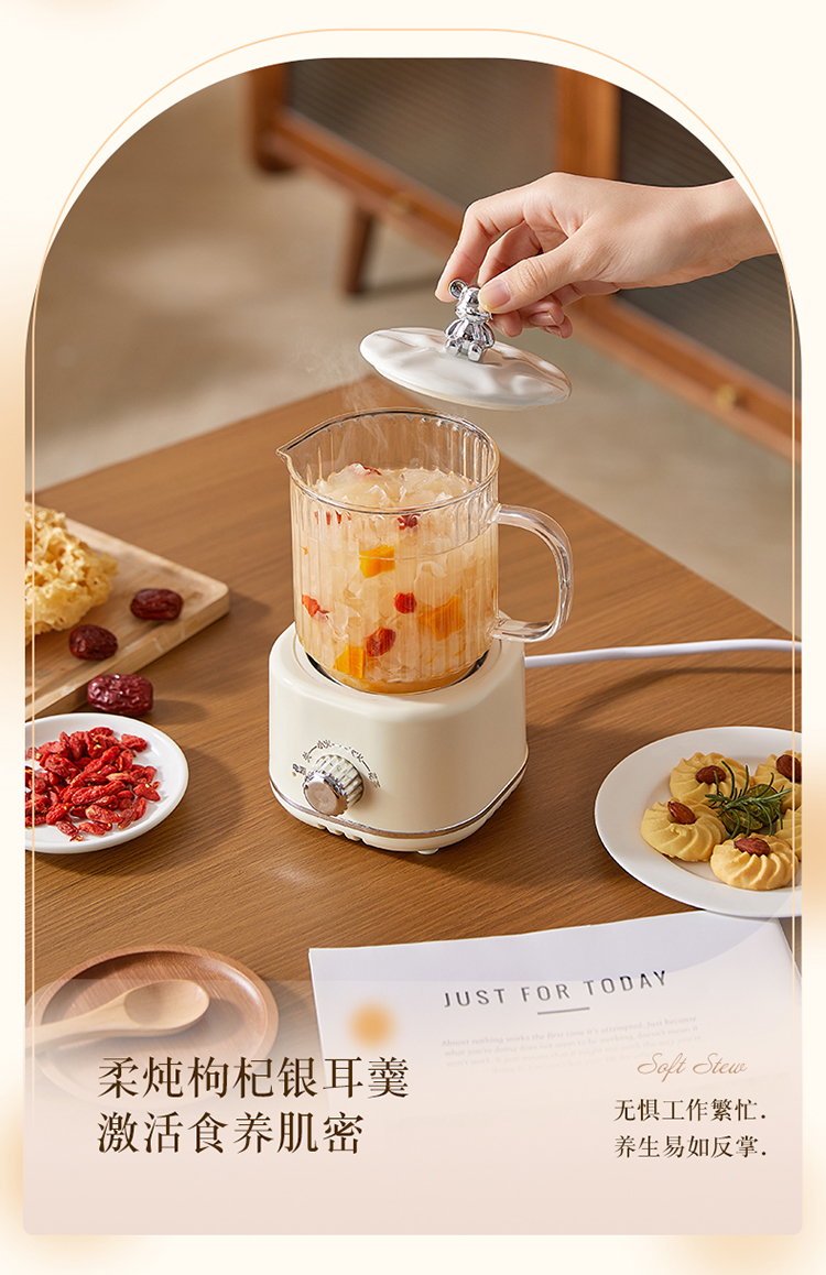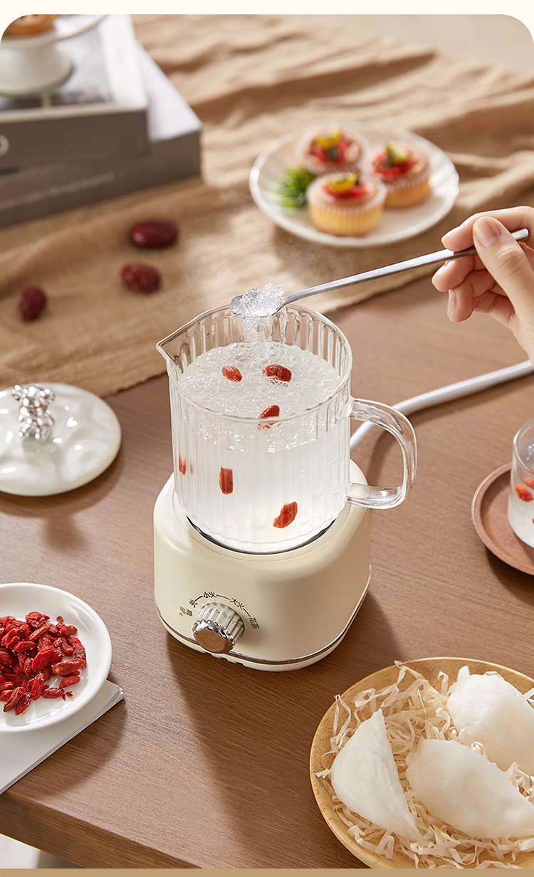 A:This product adopts a constant-temperature slow-cooking design. After power off, the base and inner container will retain residual heat, so the water temperature will not drop immediately. The water may continue to boil briefly due to residual heat. This is a normal physical phenomenon, consistent with the residual heat principle of electric stew pots and health pots. It is not a quality issue. Unlike instant-heating devices, it cannot stop boiling immediately after shutdown. Please rest assured.