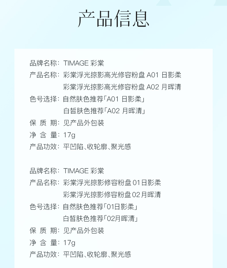 彩棠高光修容盘 三色一体02月晖清 -白皙肤色 17 克