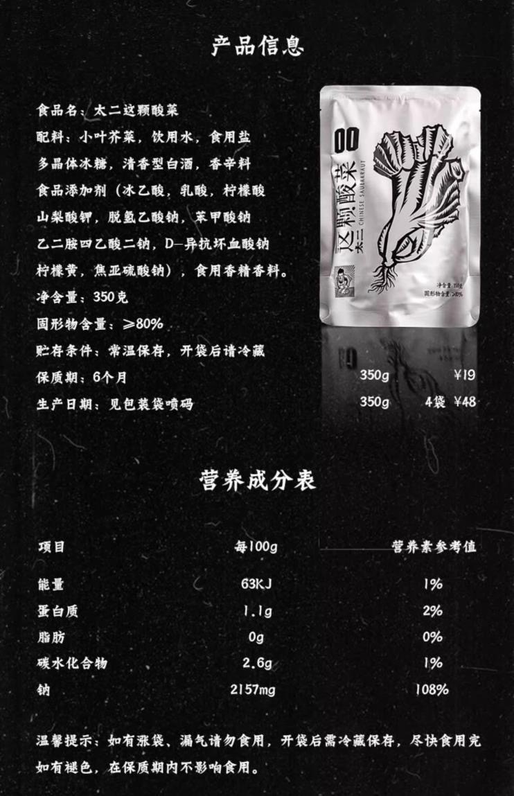 产地:中国大陆单位数量:350 克品牌:太二