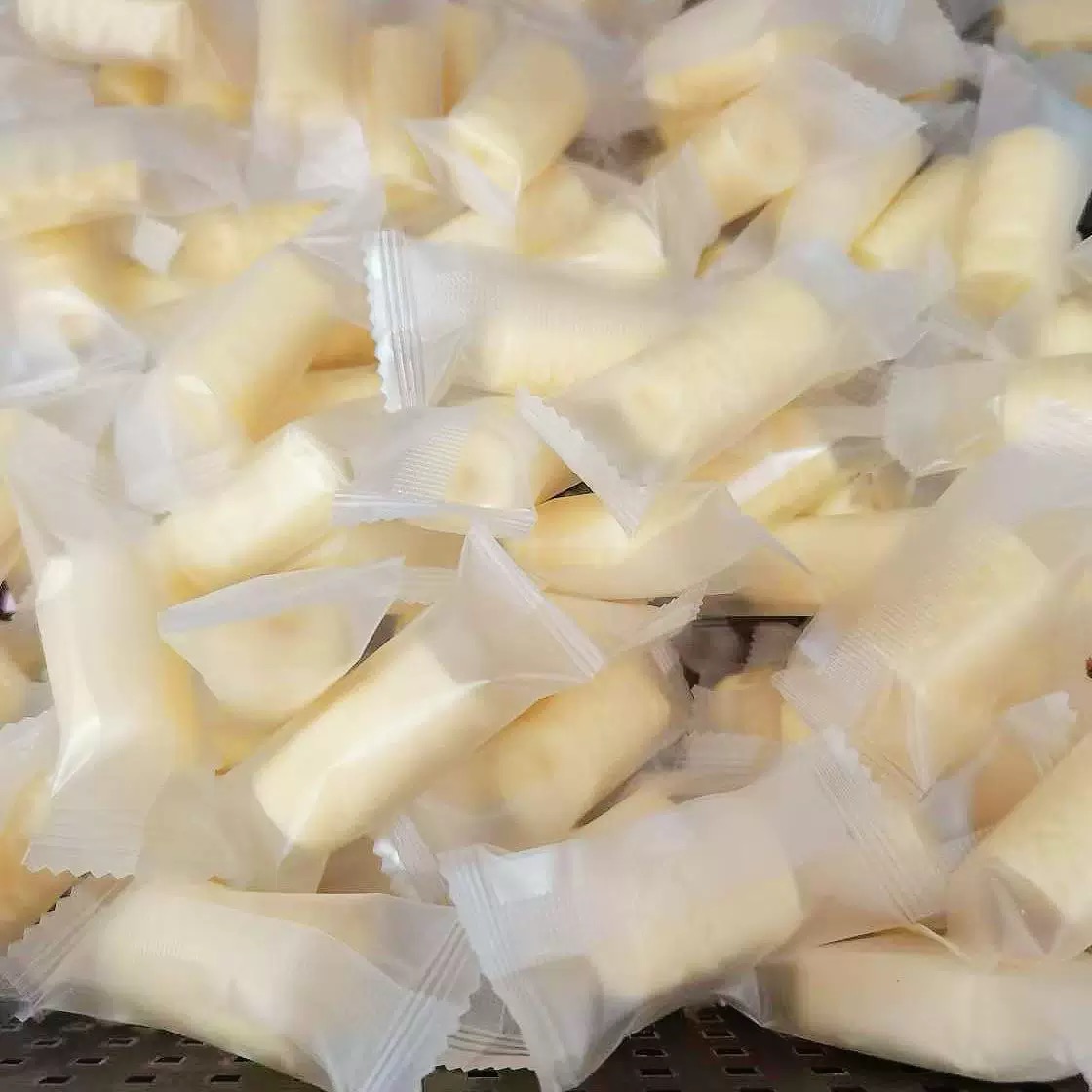 • Manufacturing Procedures: Heat the milk to a certain temperature and then add a starter culture, so that lactose is converted into lactic acid and the protein coagulates. Then, stir and filter to remove the excess water to obtain cheese. Next, mix the cheese with sugar, spices, etc., and knead and stretch it repeatedly to make the texture more chewy. Finally, cut it into small pieces and shape it.
