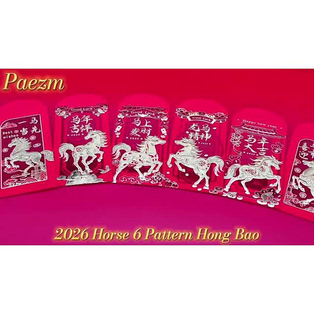 - 壓花農曆新年紅包——金色壓花紅包採用6種不同的駿馬圖案設計,每一種都融入節日元素,傳遞節日祝福。紅色背景在中國文化中象徵着好運和繁榮,精美的馬主題藝術品適合向家人和朋友表達您對 2026 年的真誠祝福。