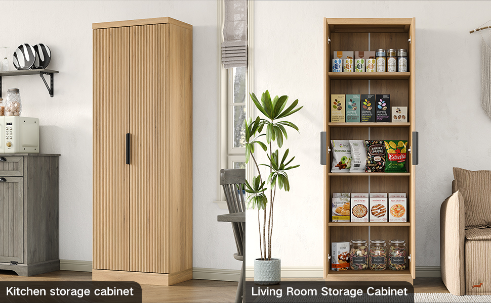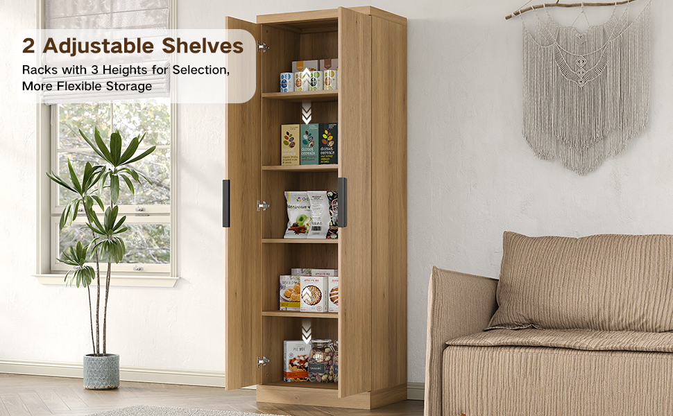 Spacious Storage: There are 5 shelves inside the cabinet, including 2 adjustable shelves, this storage cabinet offers versatile storage for your books, decor, pantry items, or office supplies. Customize the layout to fit taller items and keep everything neatly organized