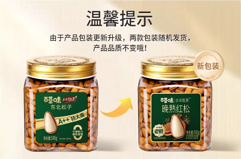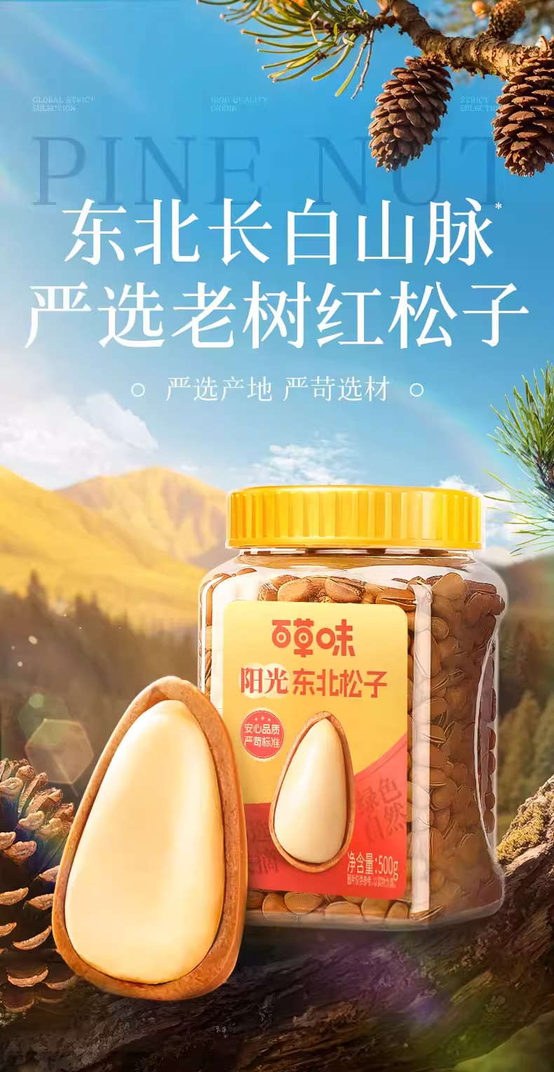 百草味 特级东北开口松子手剥开口大颗粒坚果健康零食 500 克