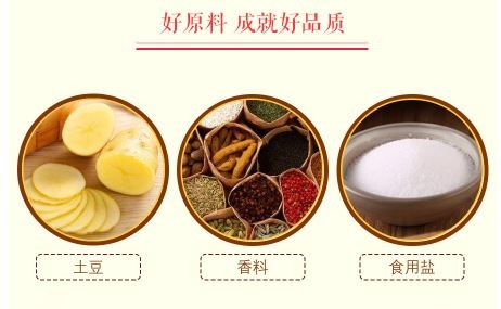 配料表:馬鈴薯、植物油、香辣味調味料、白砂糖、食用鹽等