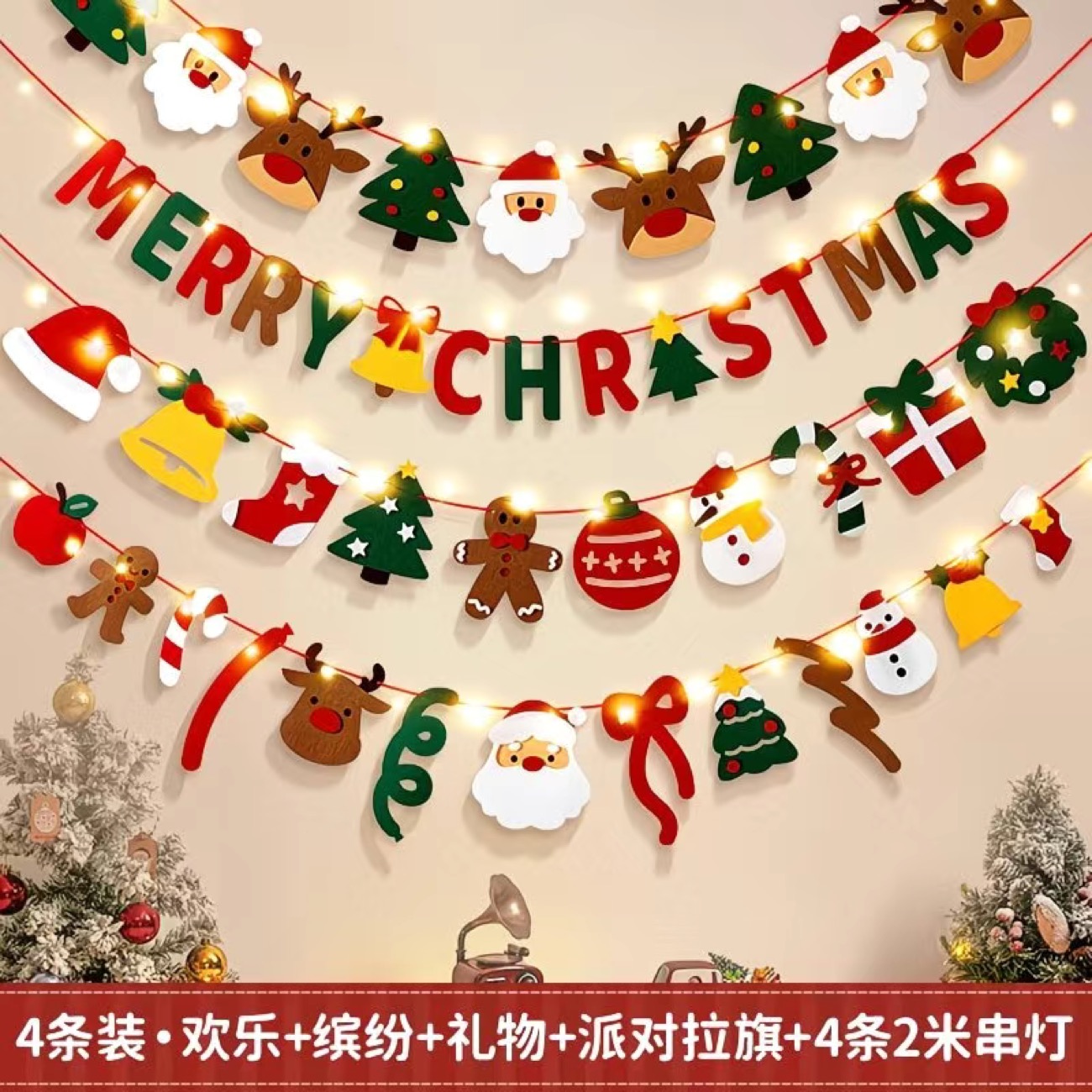 聖誕節拉旗裝飾裝飾品氛圍掛件裝扮弔旗場景商場佈置 4 包