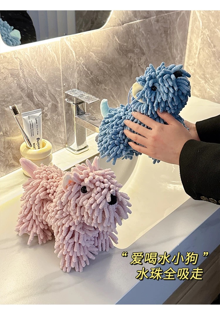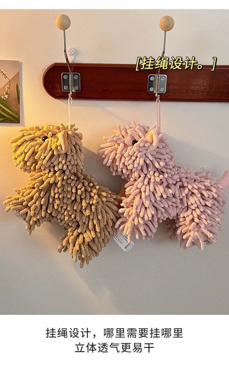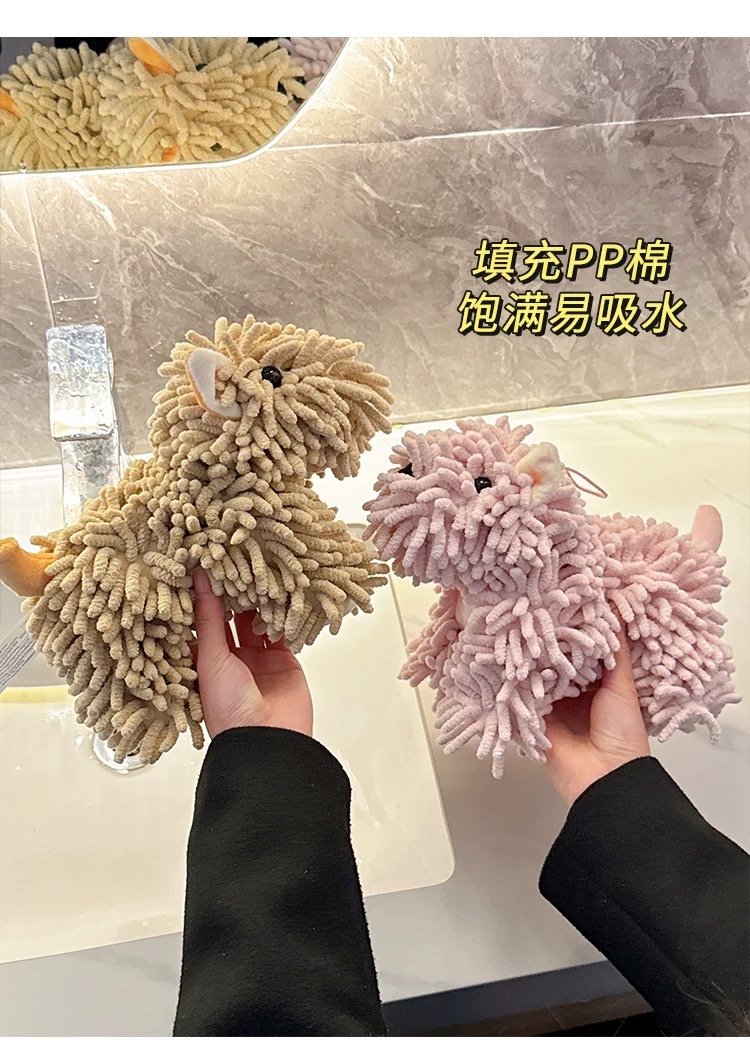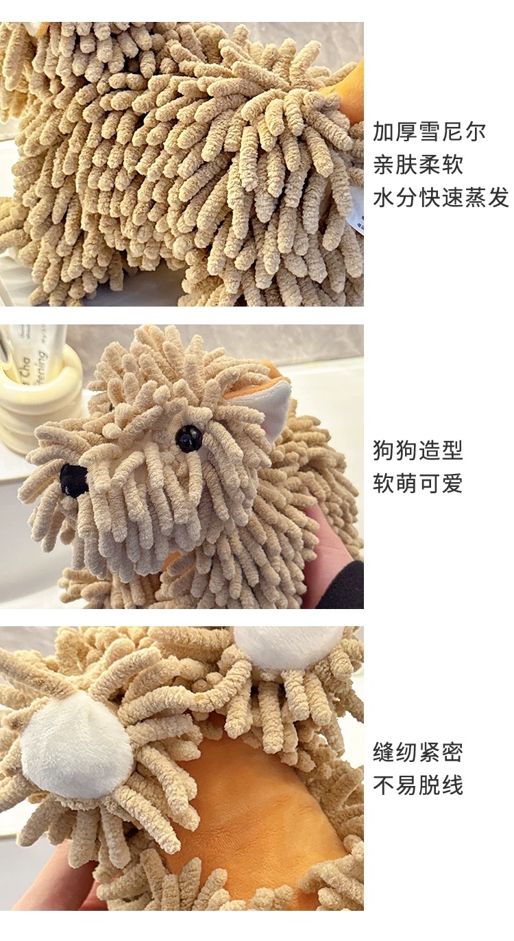 超可愛掛式擦手巾 卡通雪尼爾棕色小狗 1 份