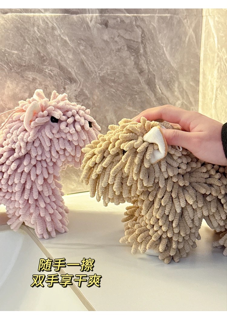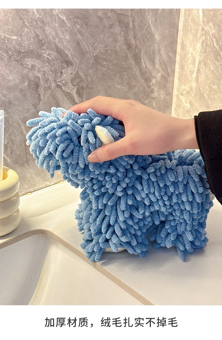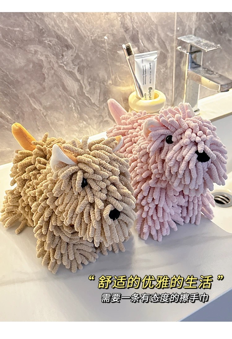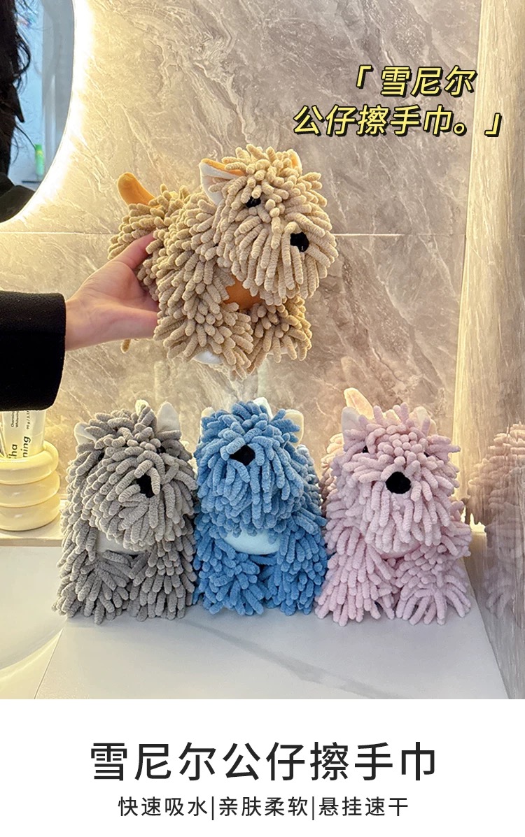 超可愛掛式擦手巾 卡通雪尼爾棕色小狗 1 份
