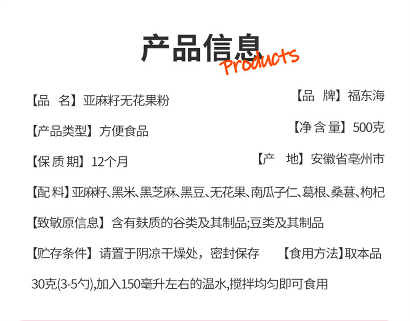 Fudonghai Flaxseed Fig Powder 500 그램