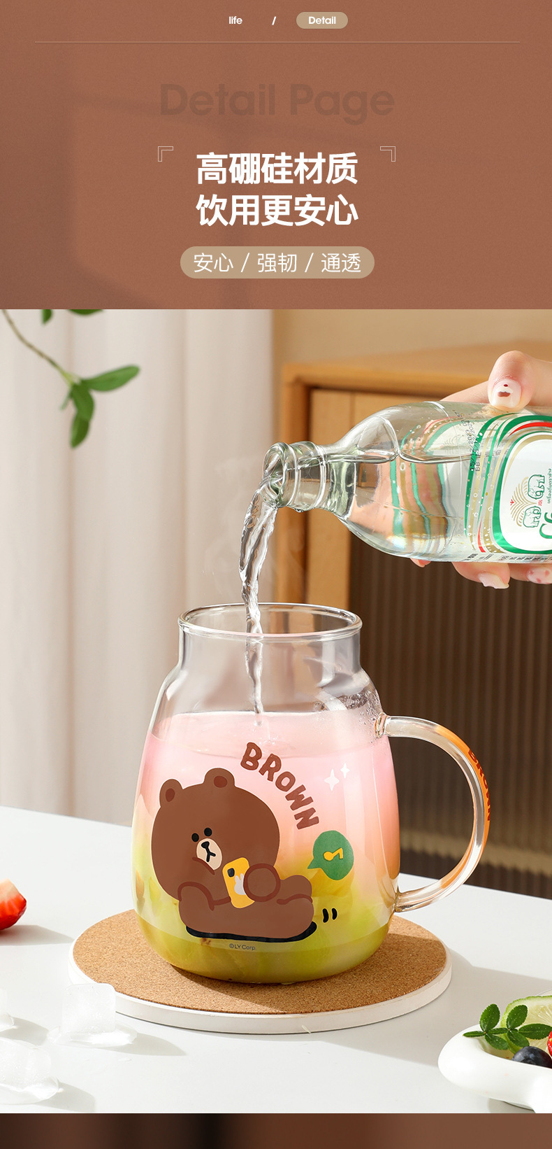 Glass Tea Mug Brown 1 개