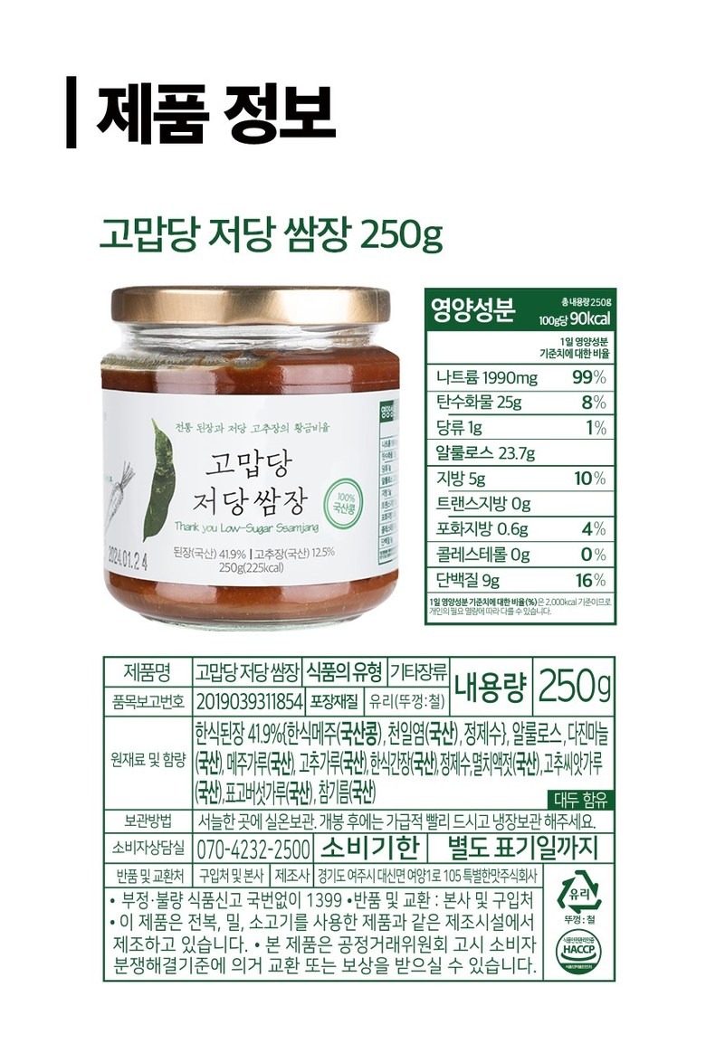 고맙당 저당 쌈장 250g 250 그램