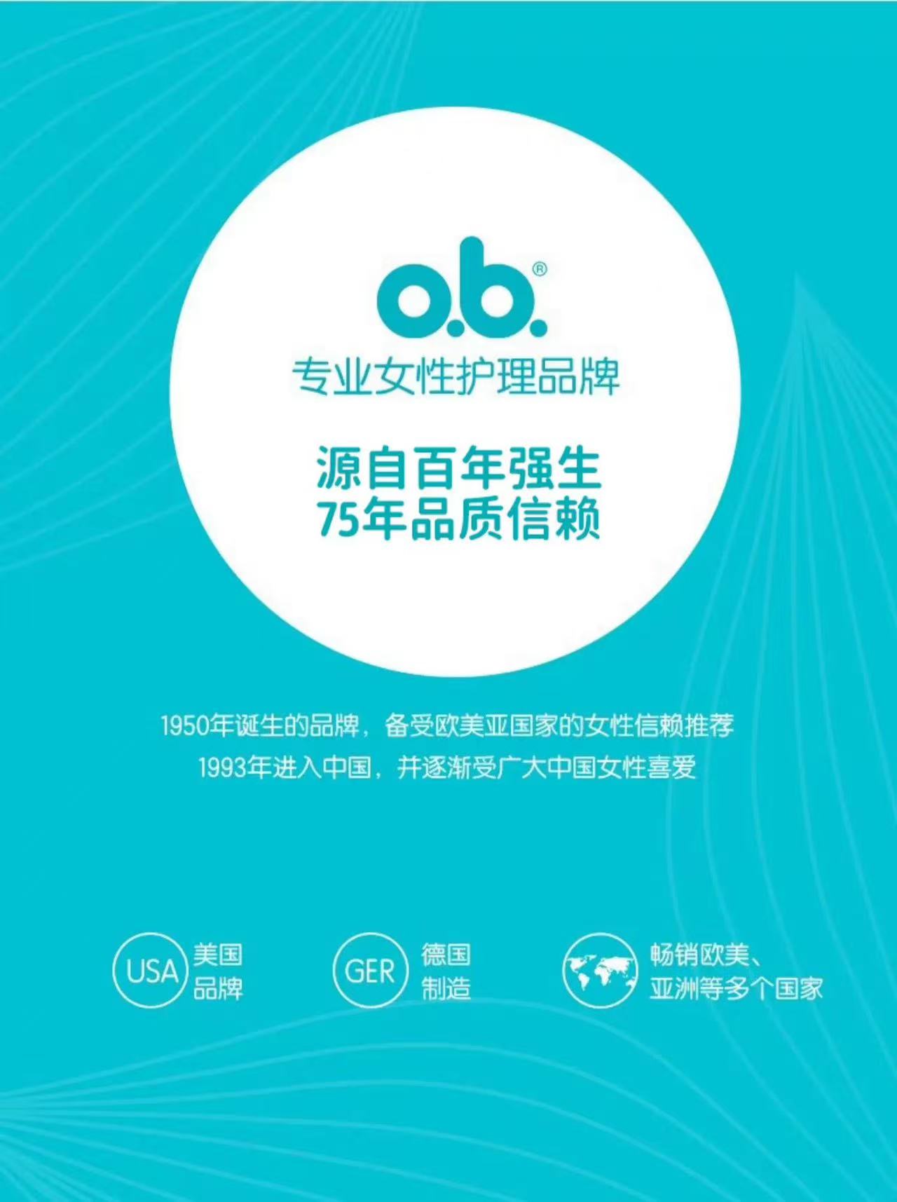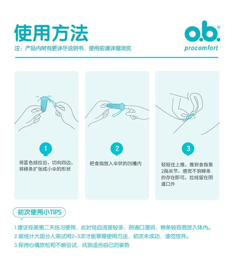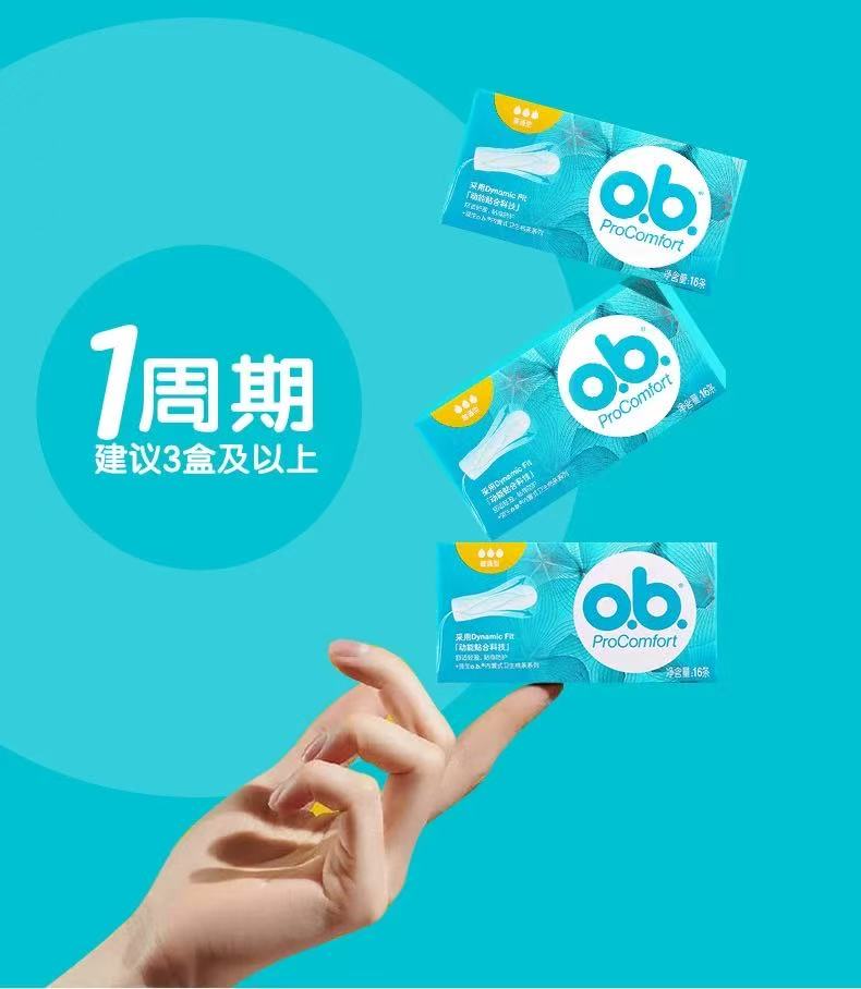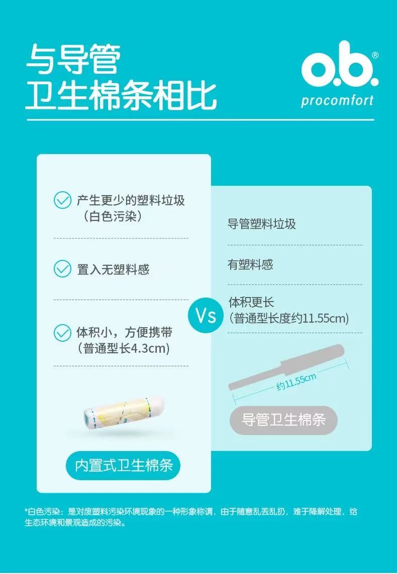强生ob卫生棉条 内置卫生巾 告别闷热 普通型 1 盒