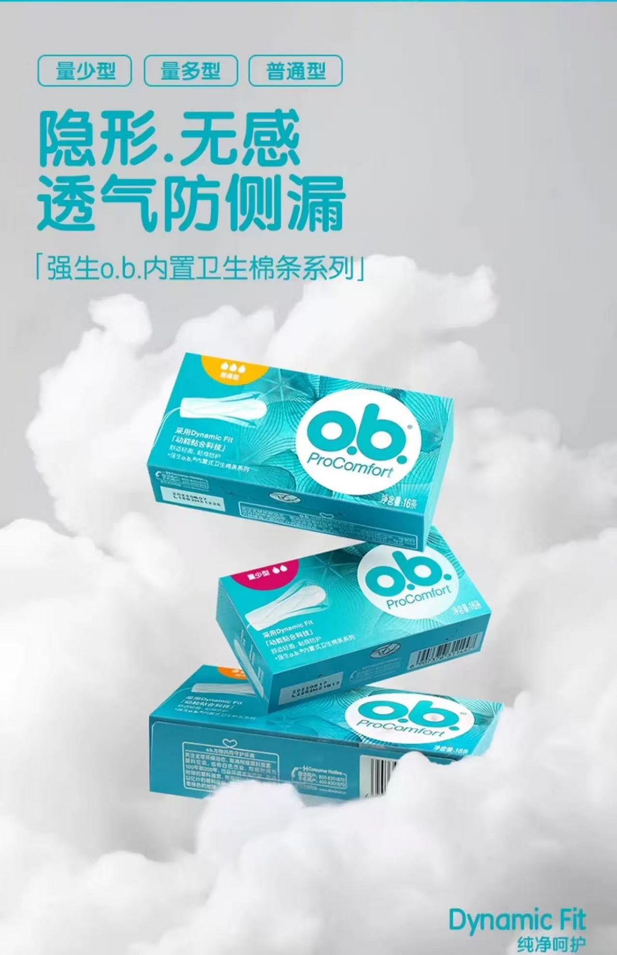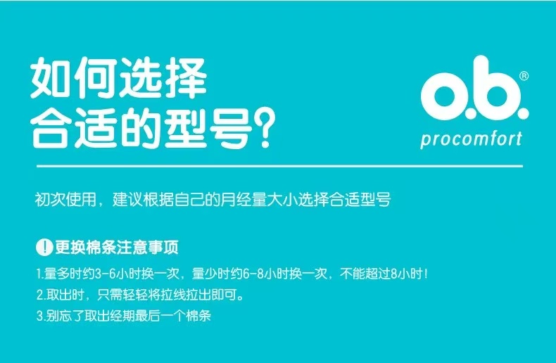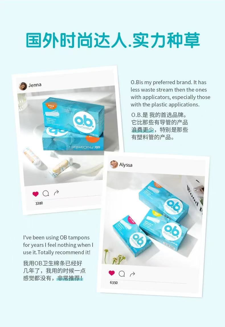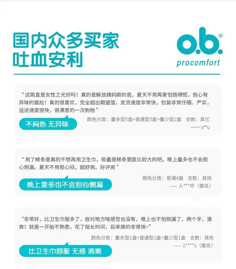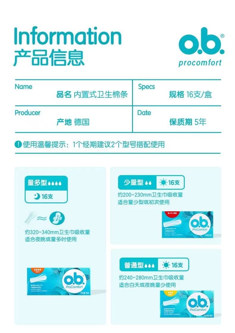 强生ob卫生棉条 内置卫生巾 告别闷热 普通型 1 盒