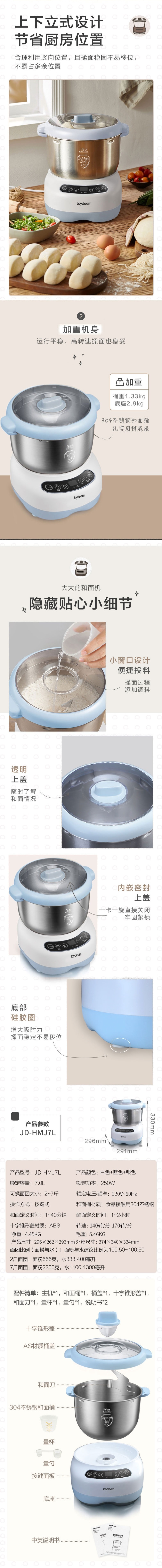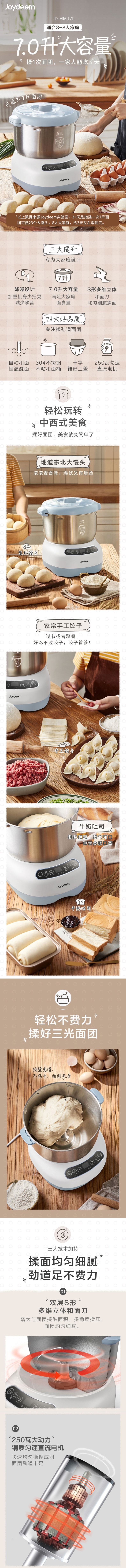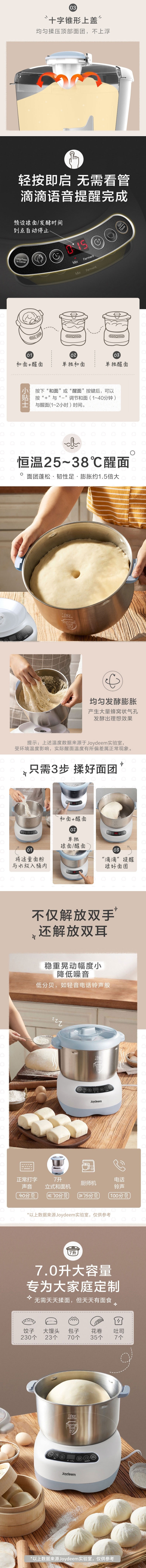 7升大容量,一次揉2~7斤面团,大小家庭都适用。
