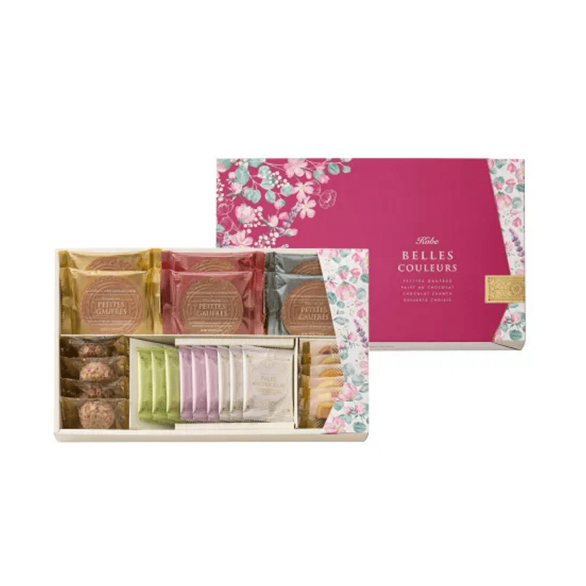 This colorful limited-edition assortment features carefully selected popular baked sweets from Kobe Fugetsudo, including petite gaufres, langue de chat cookies, and chocolate crunch treats. Perfect for celebrations, greetings, and gift occasions, each item is individually wrapped, making it easy to share. Whether as a treat for yourself or a seasonal spring gift, this elegant assortment is sure to delight.