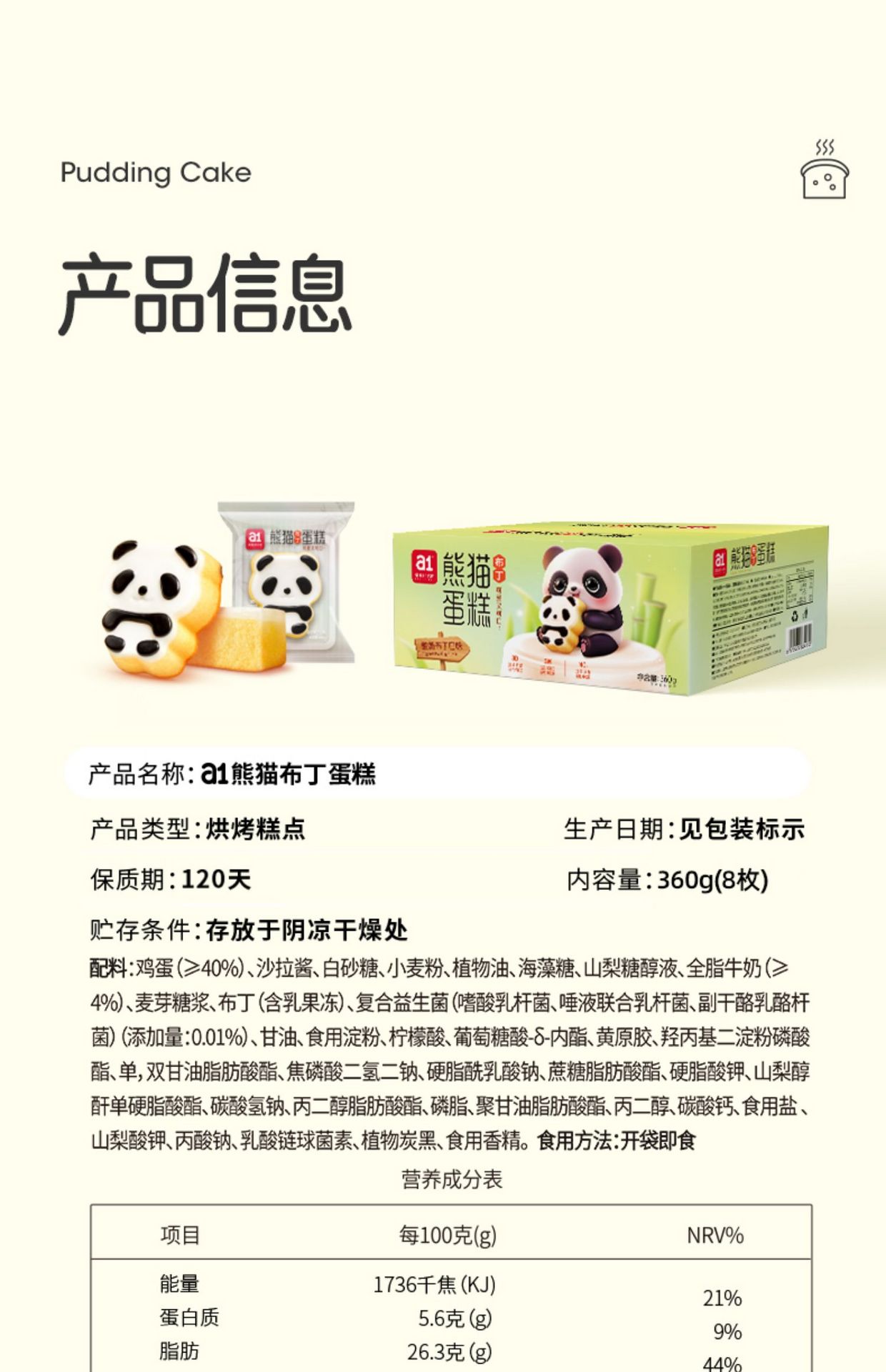 Panda Pudding Cake 360g 1 케이스