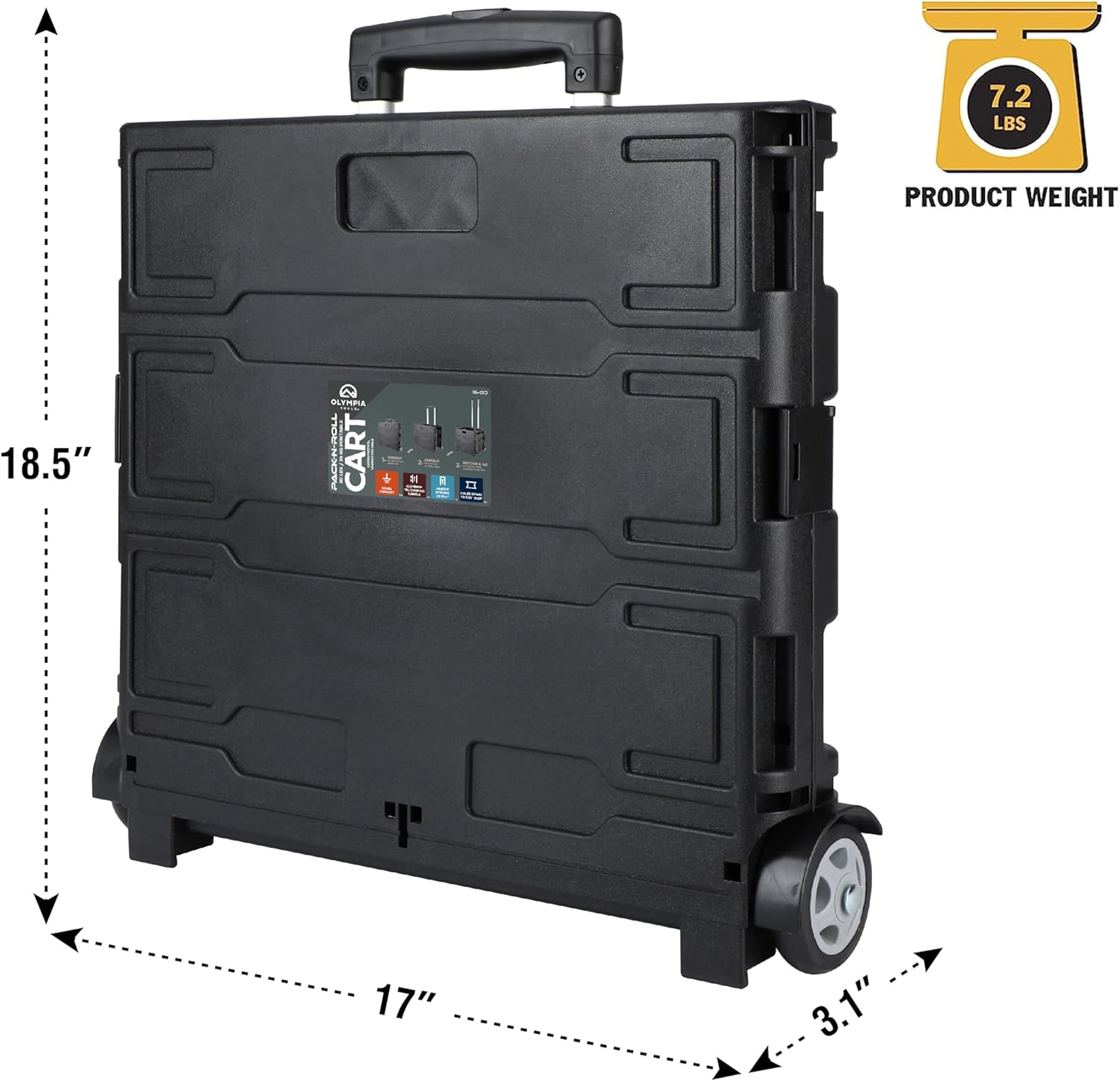 - HEAVY DUTY PORTABLE CRATE: Olympia Tools 85-010 Grand Pack-N-Roll is a Portable folding cart great for the job site, travel, home and garden, shopping, office use, and more. Features telescopic aluminum handle with 39.5" max extension.