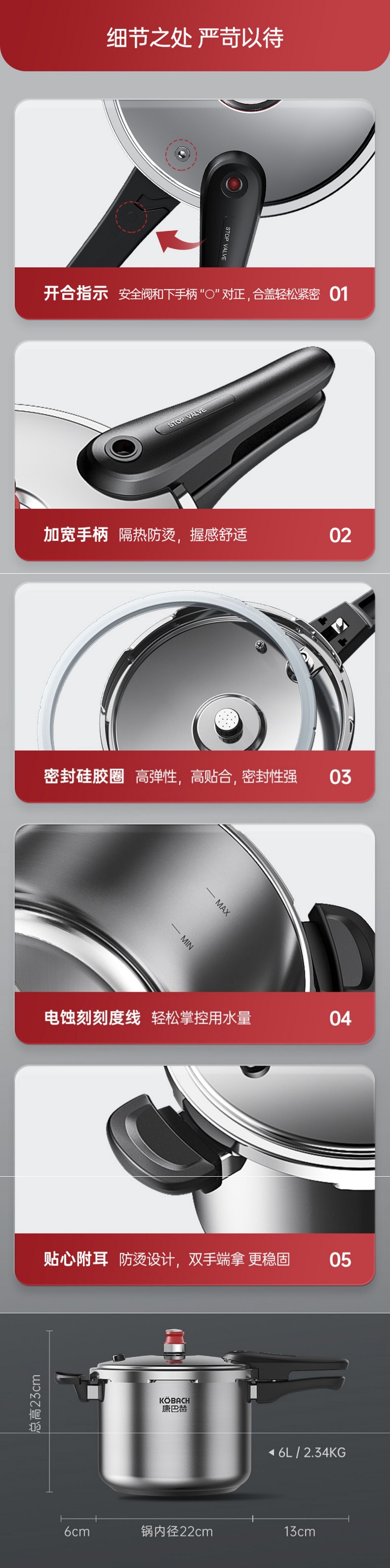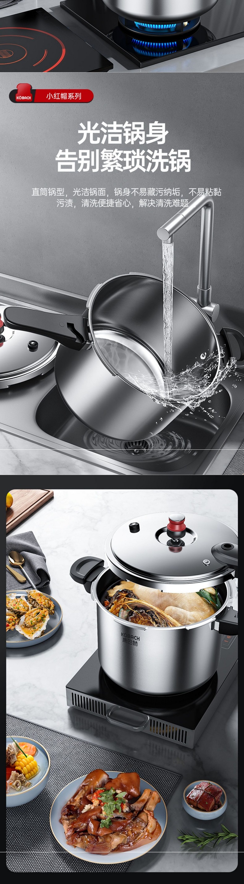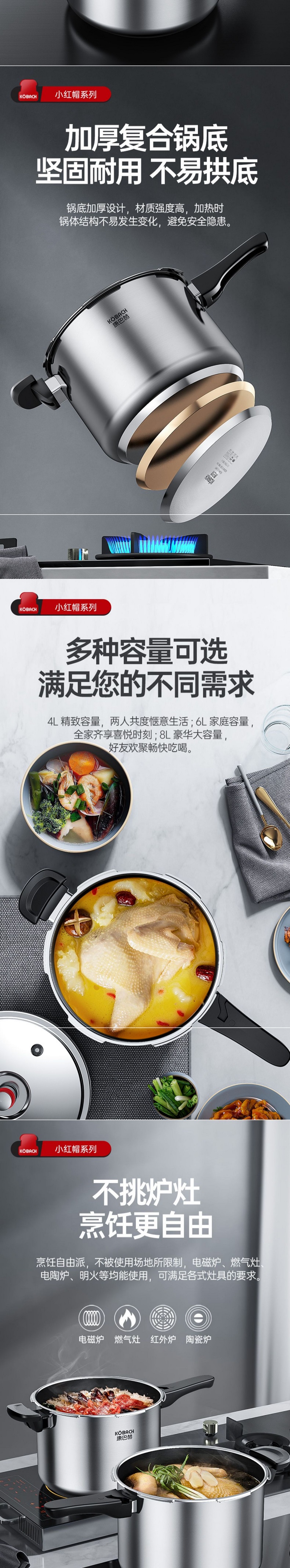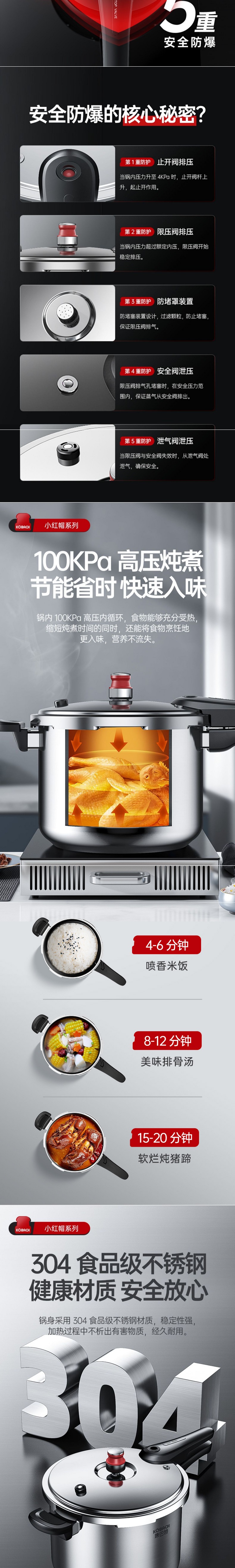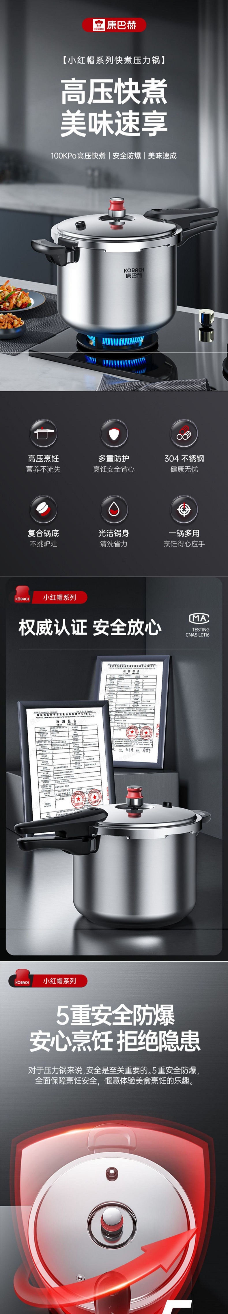 康巴赫 高壓鍋 22cm 6L 304不鏽鋼 小紅帽壓力鍋 快煮安全防爆 爐竈通用 1 份