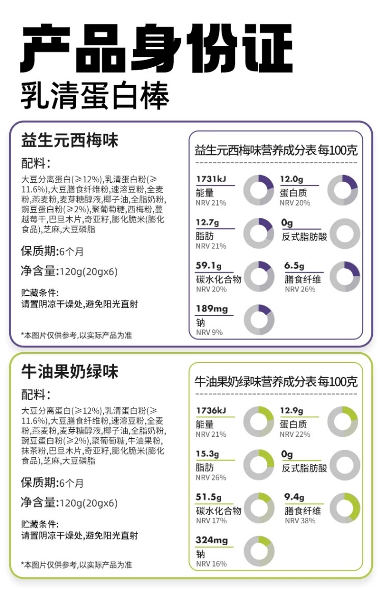 蛋白能量棒 代餐饱腹健身饼干牛油果奶绿味1盒 120 克