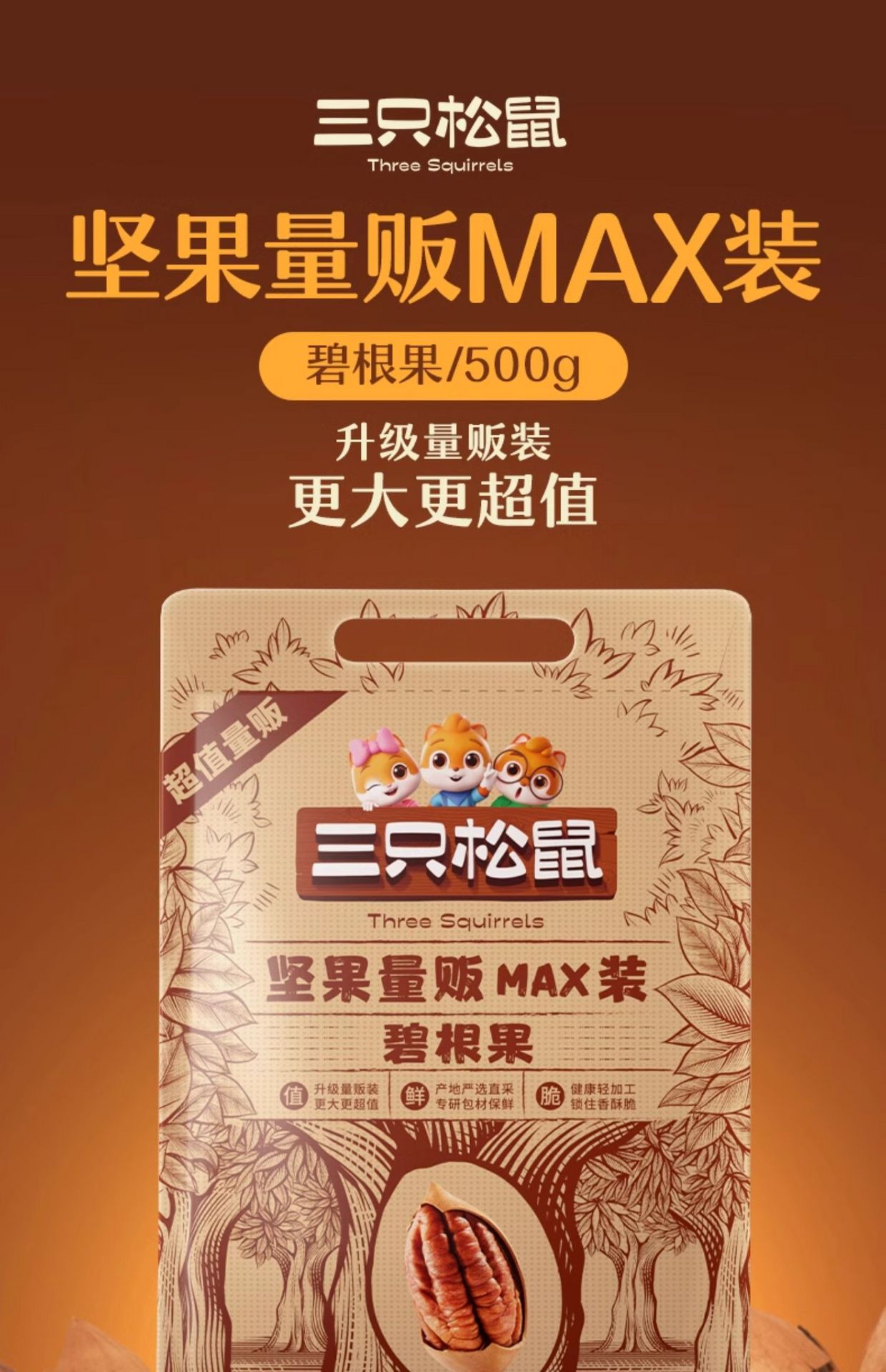 Three Squirrels Big Bag Pecant 500 g