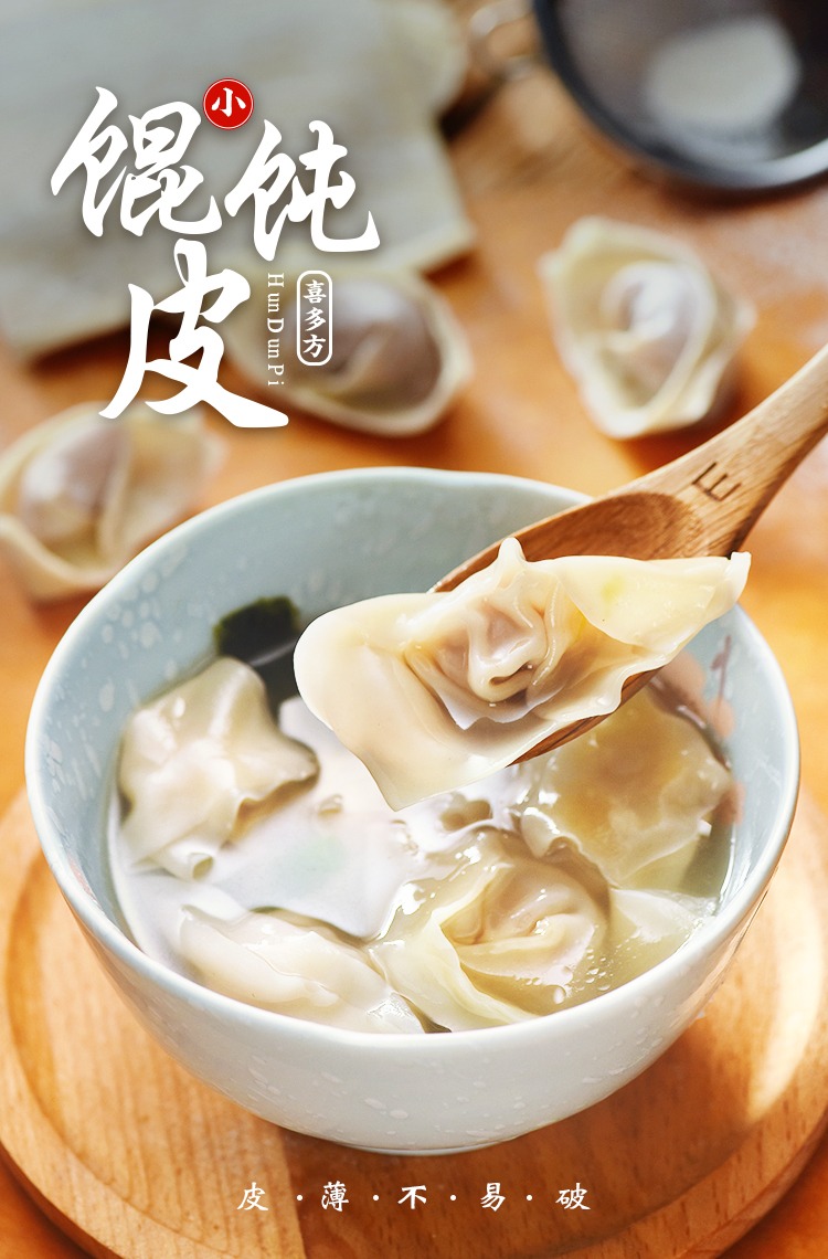 喜多方餛飩皮,遵循健康快捷飲食方式,自製餛飩輕鬆又簡單,餛飩皮晶瑩剔透,口感細膩香滑,品質卓越,讓您在家可以輕鬆做出美味的餛飩。