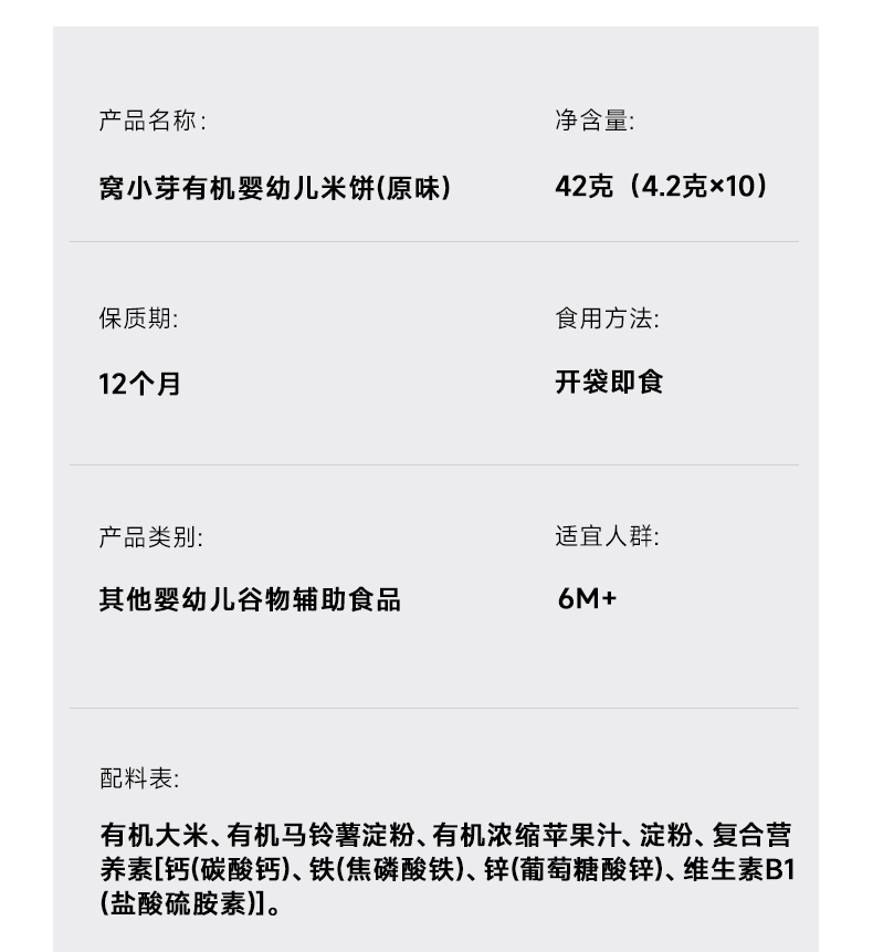 Woxiaoya Organic Infant Rice Biscuits 42g 1 each
