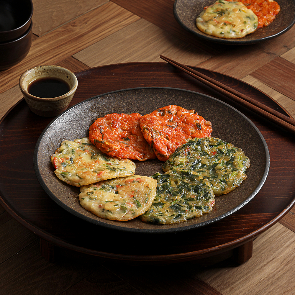 We've created a meal kit for three types of pancakes: Kimchi Pancake, Seafood Pancake, and Chive Pancake, making it easy for you to cook at home. Just lightly grease a frying pan and heat it up. You'll have a delicious trio of pancakes ready in no time.