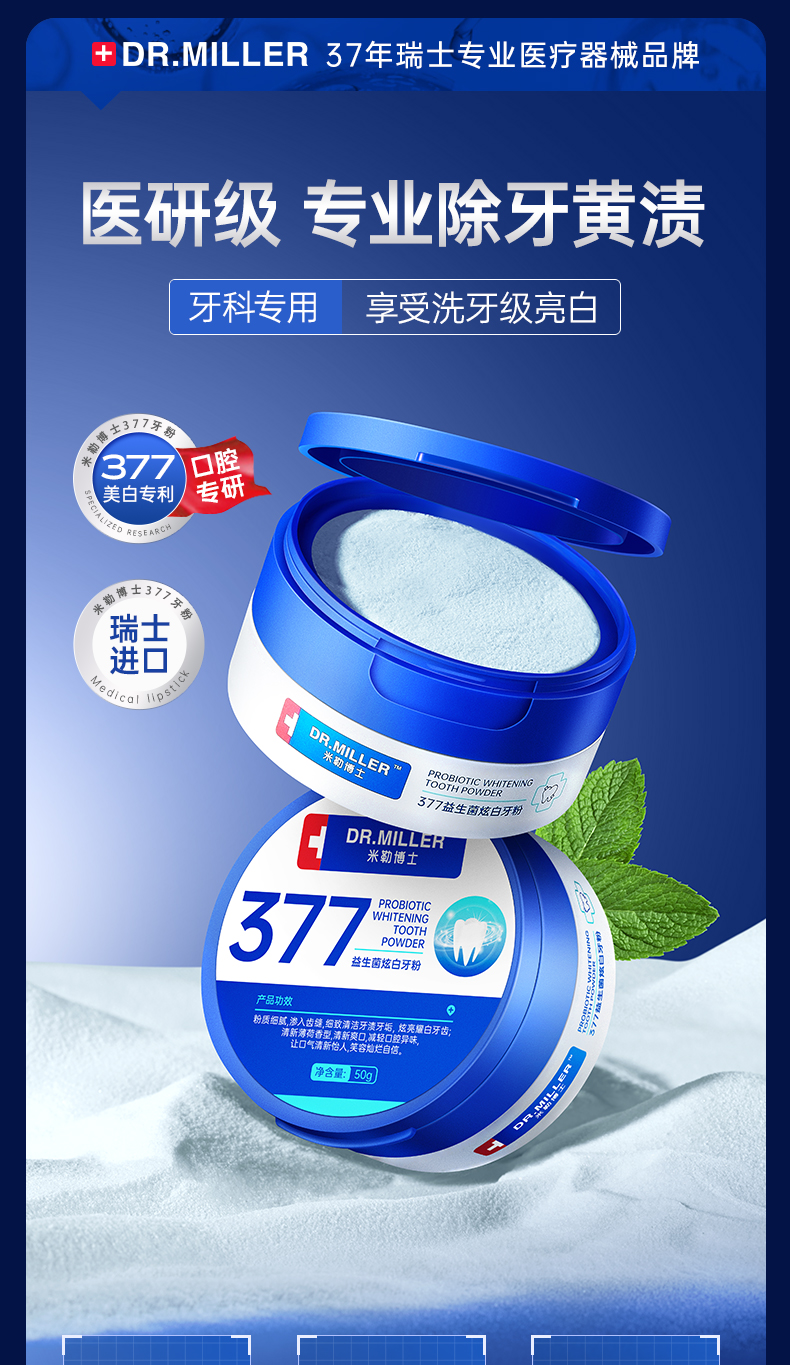 377洁牙粉 美白去黄洗牙齿渍清洁结石污垢 1盒 50 克