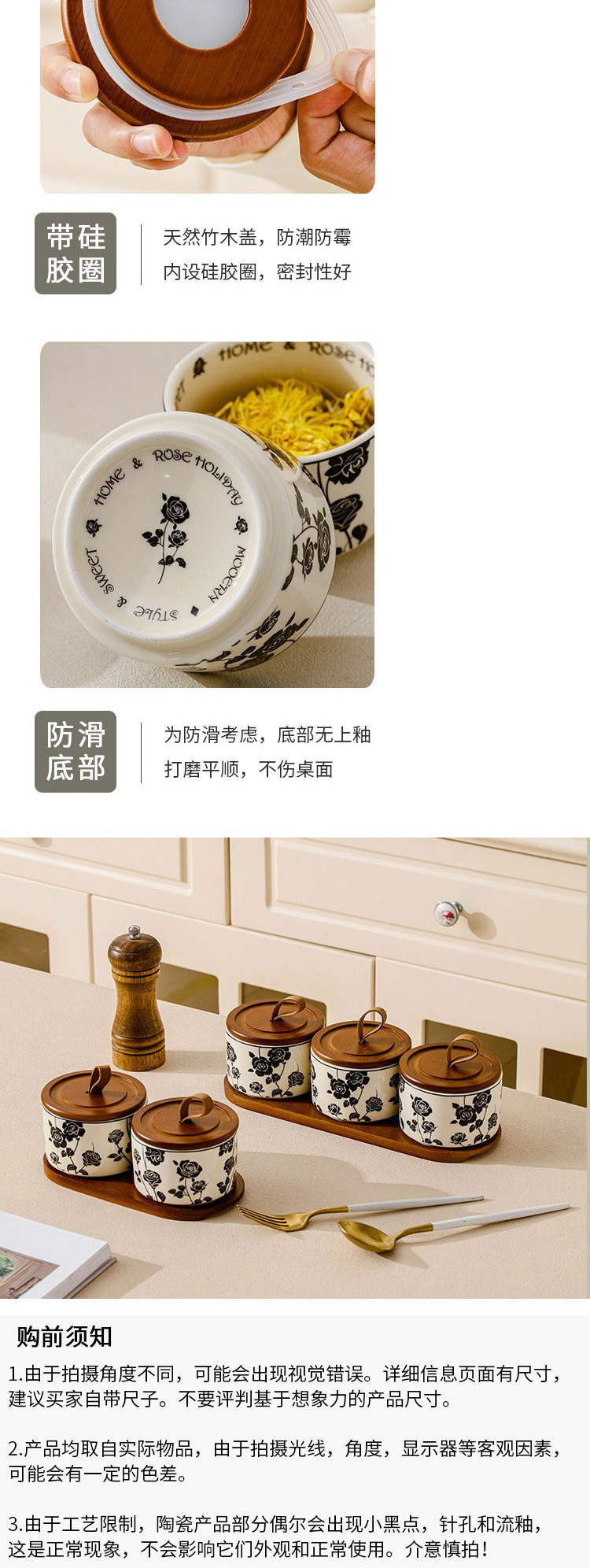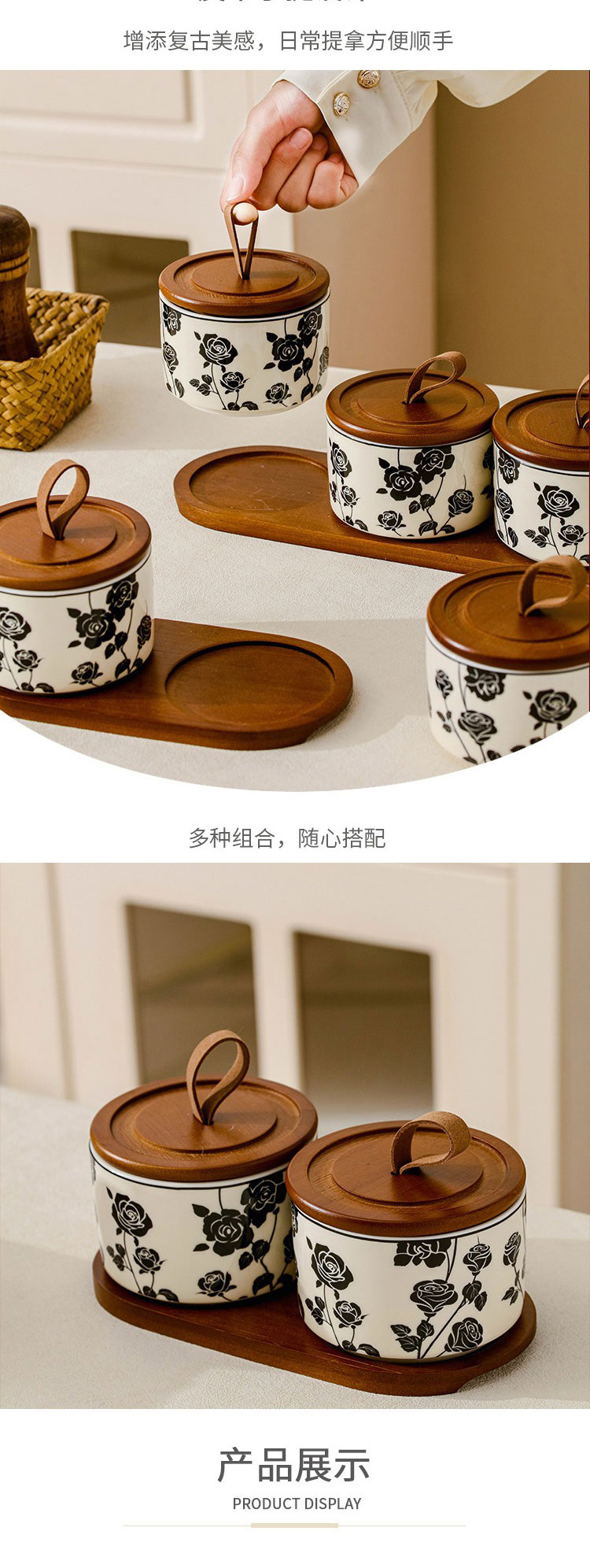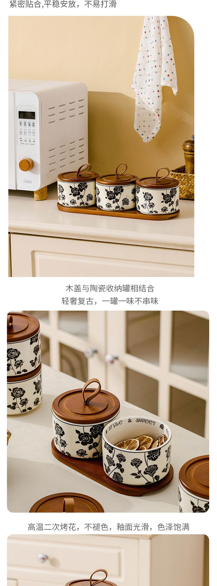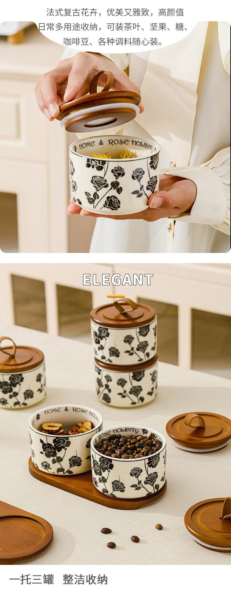 赫本風黑玫瑰家用收納陶瓷密封罐 三件套帶拖 1 份