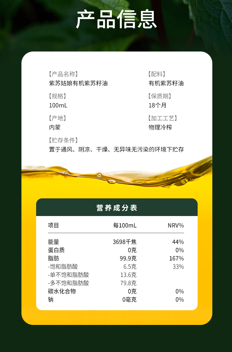 Cold pressed organic perilla seed oil 100 ml
