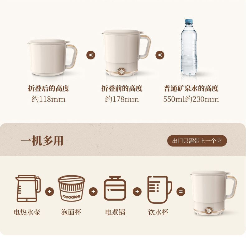 Electric Kettle 800ml Foldable 1 ส่วน