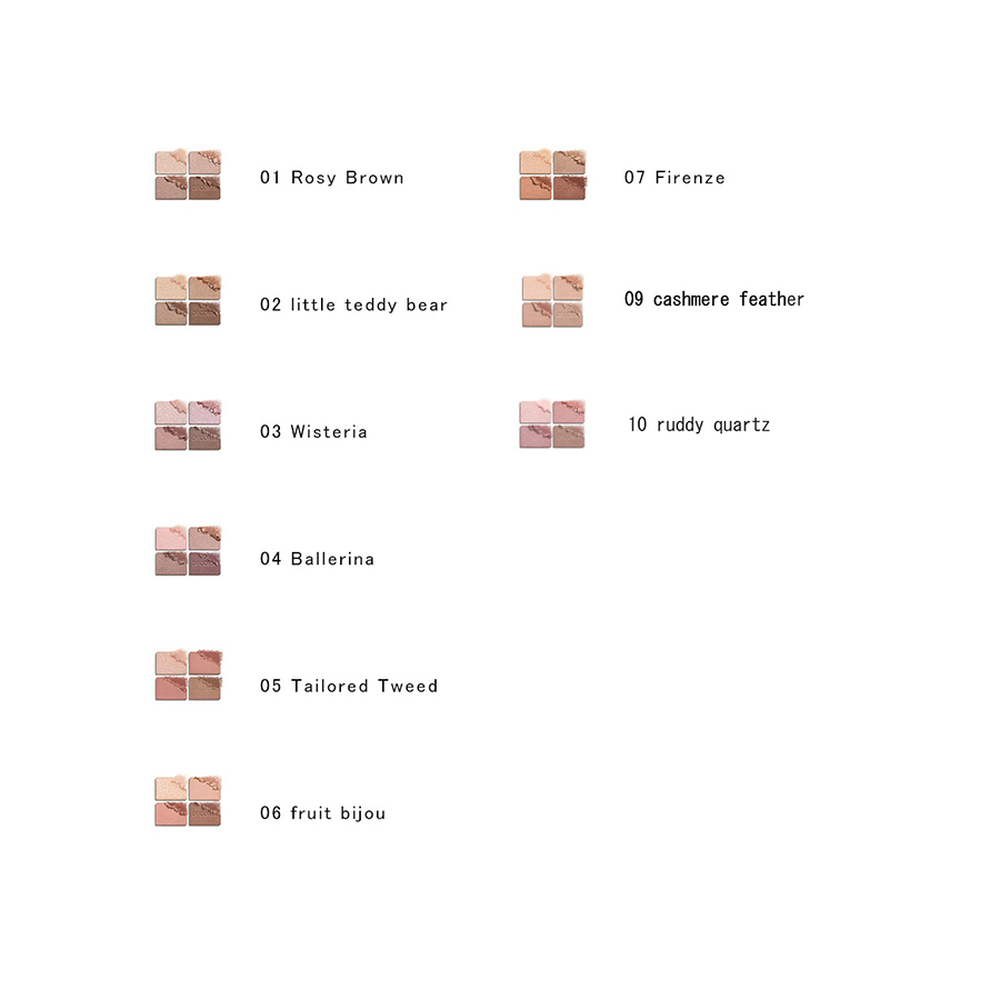多質感組合:集透明光澤、細膩珠光、柔和啞光於一盤,輕鬆打造層次分明、立體感豐富的眼妝。