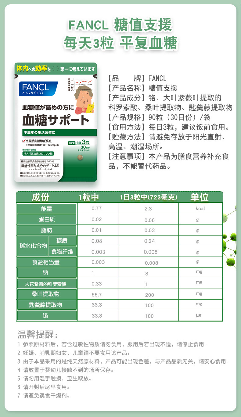 FANCL Blood Glucose Support Supplements 90pcs 1 pack