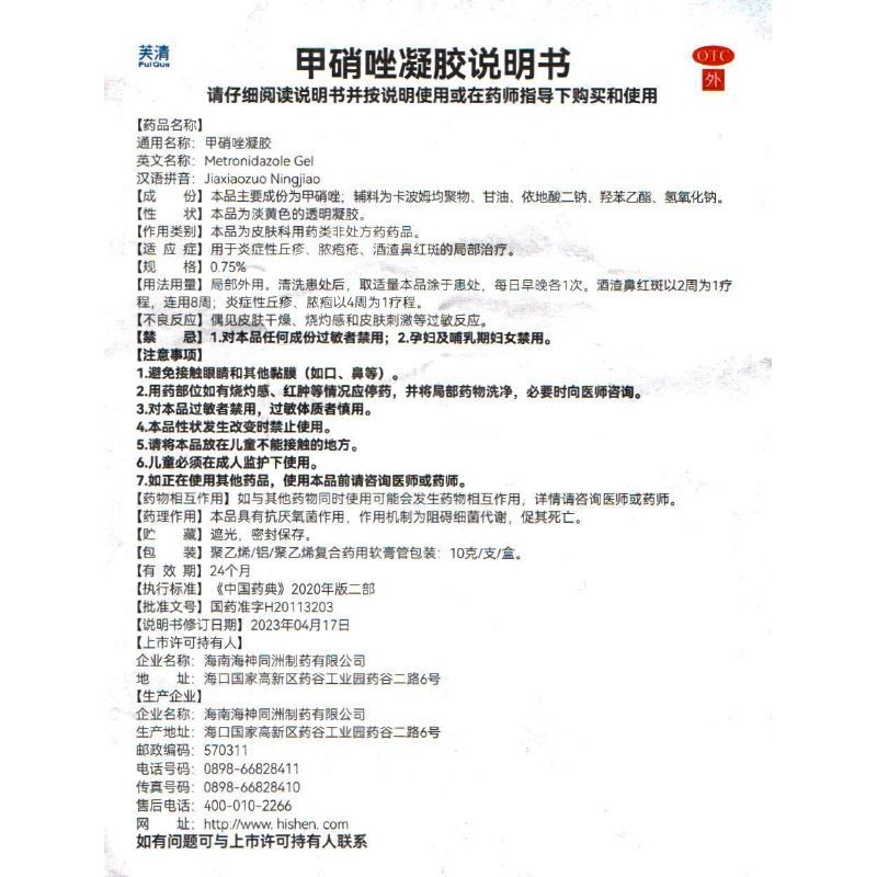 Fuqing metronidazole gel 10 그램