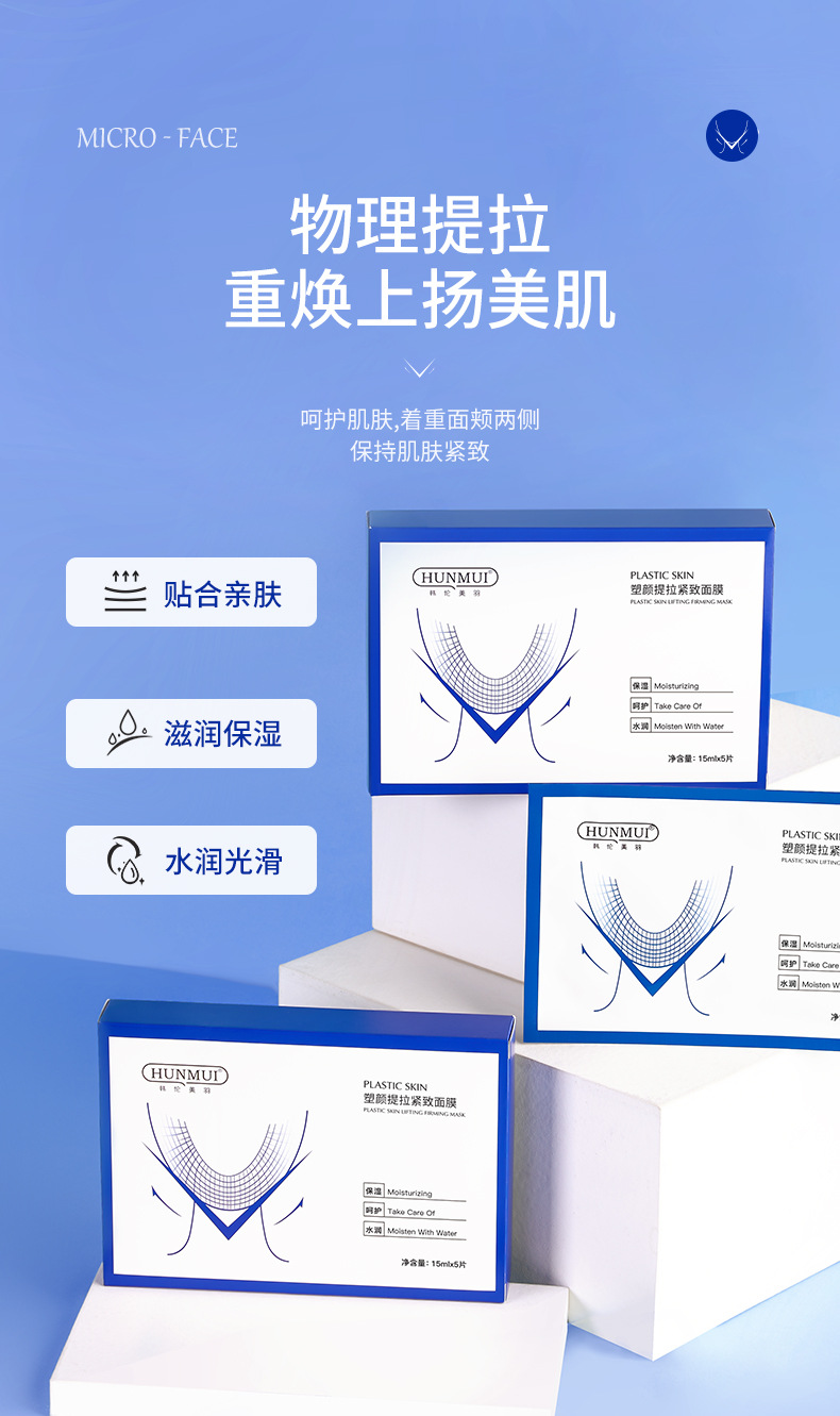 HUNMUI Shape Lift And Tighten Small V Micro Face Mask 5 pieces/box 1 ส่วน