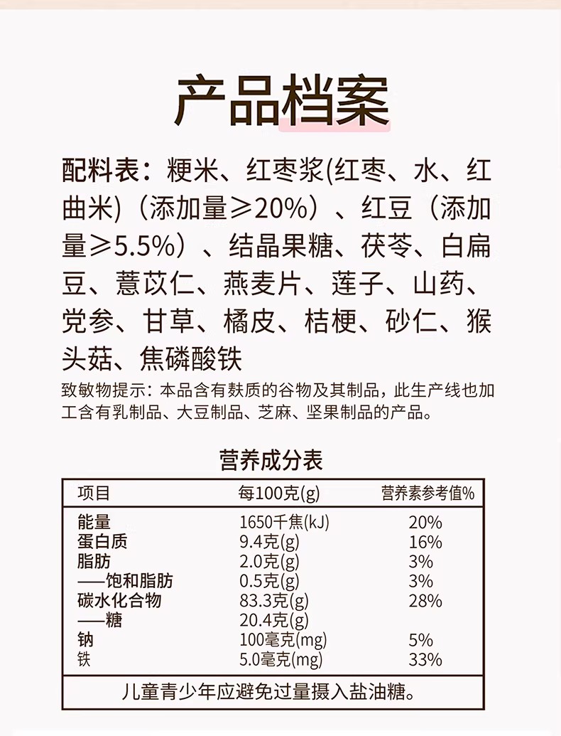江中食療富鐵紅養米糊健康食養早餐養氣色滋補代餐早餐 175 克