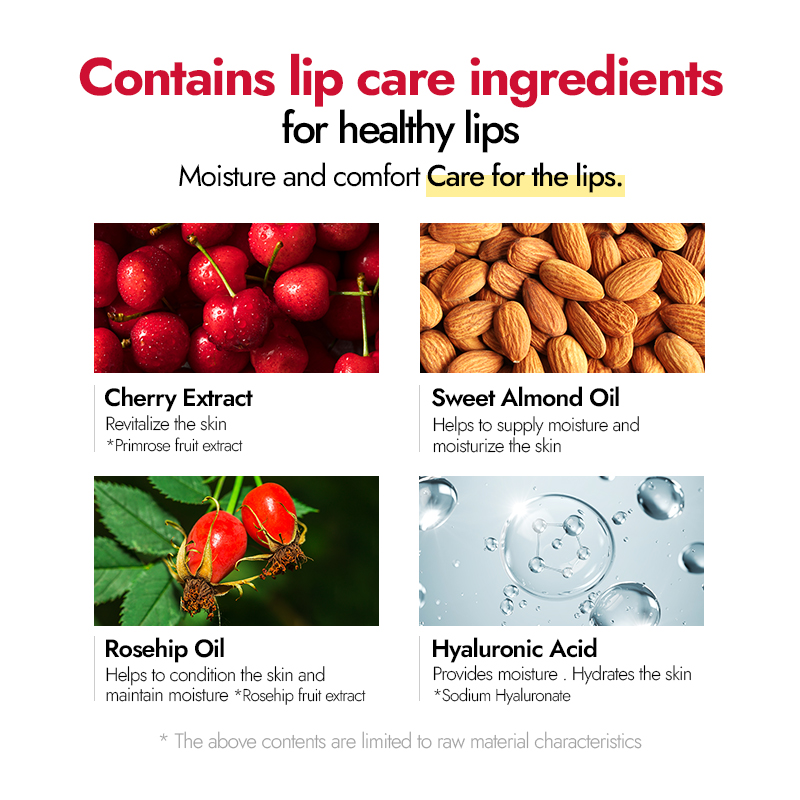Diphenyl Dimethicone, Water, Diisostearyl Malate, Bis-Diglyceryl Polyacyladipate-2, Octyldodecanol, Hydrogenated Polyisobutene, Bis-Behenyl/Isostearyl/Phytosteryl Dimer Dilinoleyl Dimer Dilinoleate, Glycerin, Dipropylene Glycol, Cetyl PEG/PPG-10/1 Dimethicone, Sorbitan Isostearate, Polysorbate 60, Pentylene Glycol, Hydroxyethyl Acrylate/Sodium Acryloyldimethyl Taurate Copolymer, Ceteareth-20, Squalane, Phenoxyethanol, Titanium Dioxide (CI 77891), Yellow 6 (CI 15985), Iron Oxides (CI 77491), Red 33 (CI 17200), Fragrance, Red 28 (CI 45410), Ethylhexylglycerin, Ammonium Polyacrylate, Aluminum Hydroxide, Blue 1 (CI 42090), Butylene Glycol, Prunus Amygdalus Dulcis (Sweet Almond) Oil, Caprylic/Capric Triglyceride, Rosa Canina Fruit Extract, 1,2-Hexanediol, Sodium Hyaluronate, Prunus Tomentosa Fruit Extract