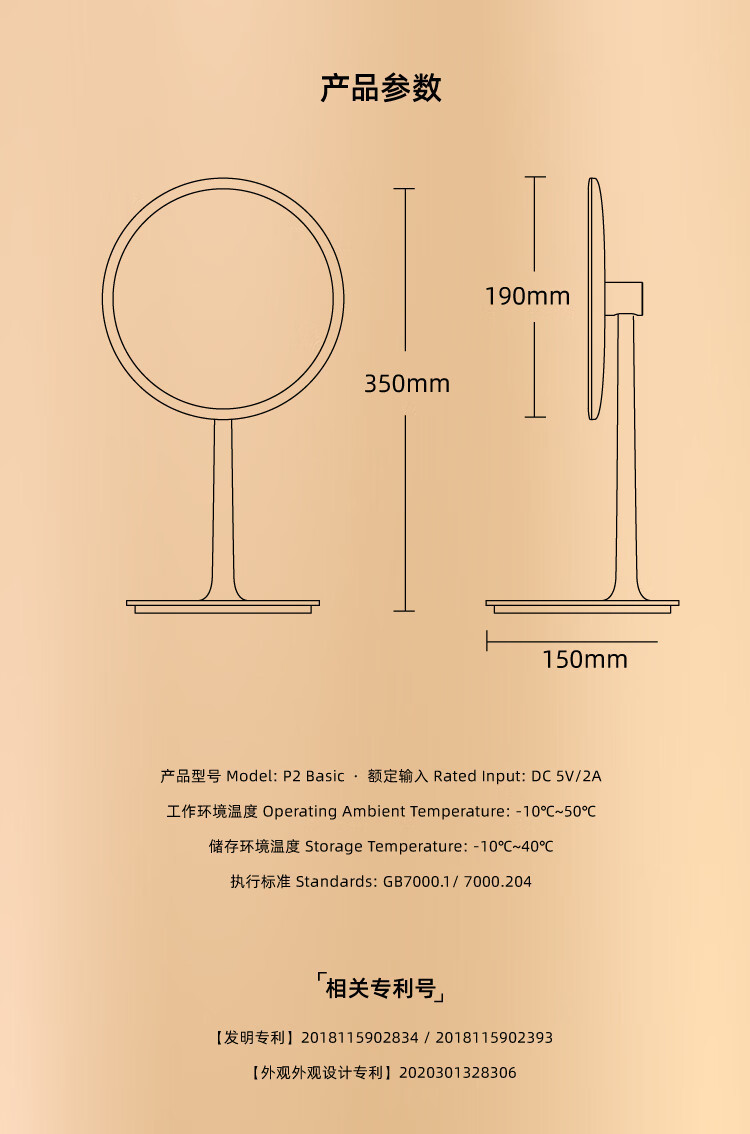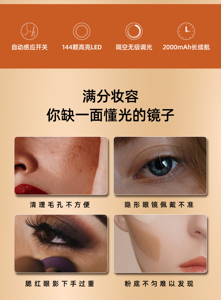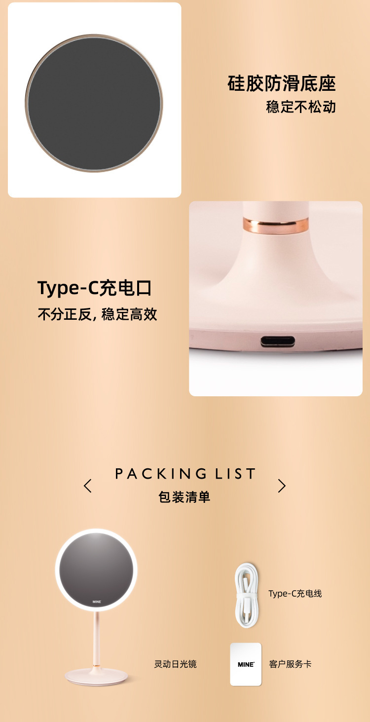 MINE智能化妝鏡臺式led燈梳妝鏡家用帶燈鏡子 1 份