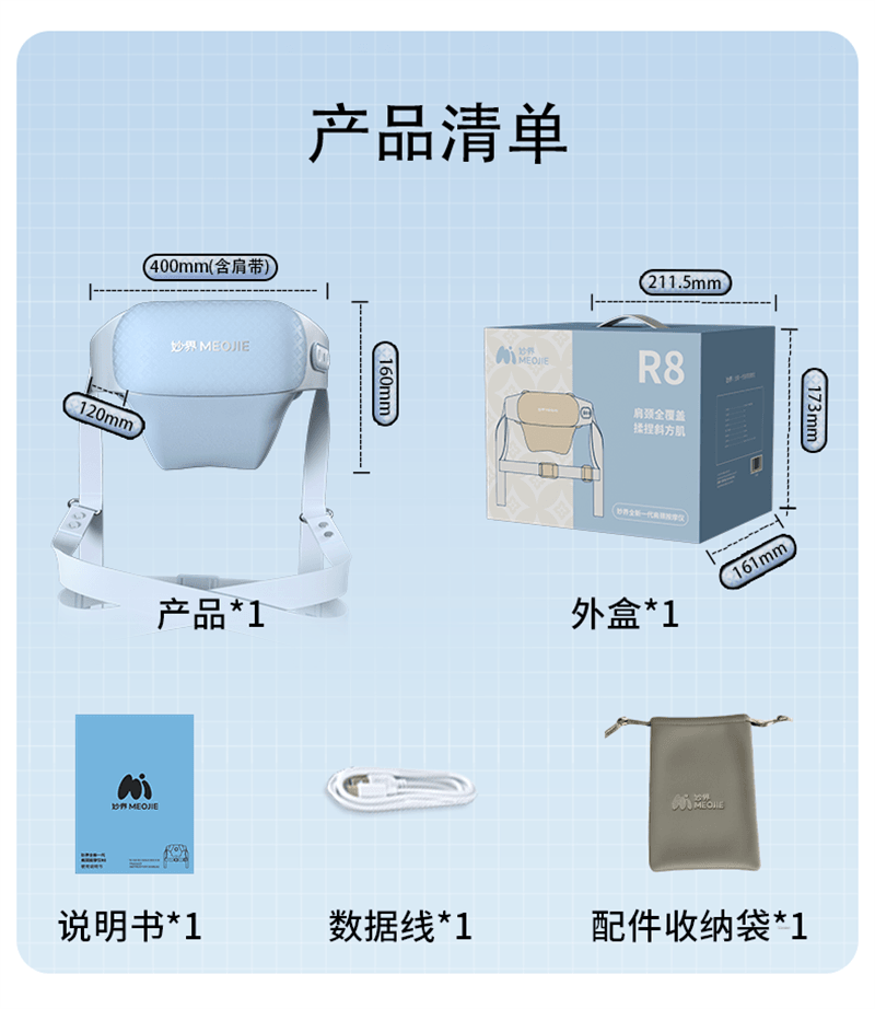 妙界 R8至尊肩頸按摩儀斜方肌肩膀頸椎按摩器甘泉藍 1 份