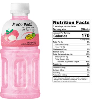 เครื่องดื่มผลไม้รสลิ้นจี่ Mogu Mogu พร้อมเนื้อนาตะเดอโคโค เคี้ยวหนึบ ขนาด 10.82 ออนซ์