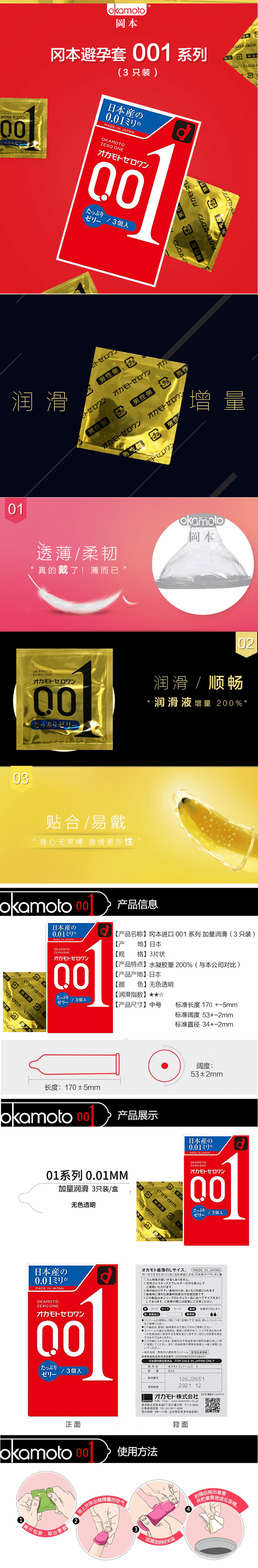 OKAMOTO 001 thin Double-layer Condoms 3pack L Size 1 ส่วน