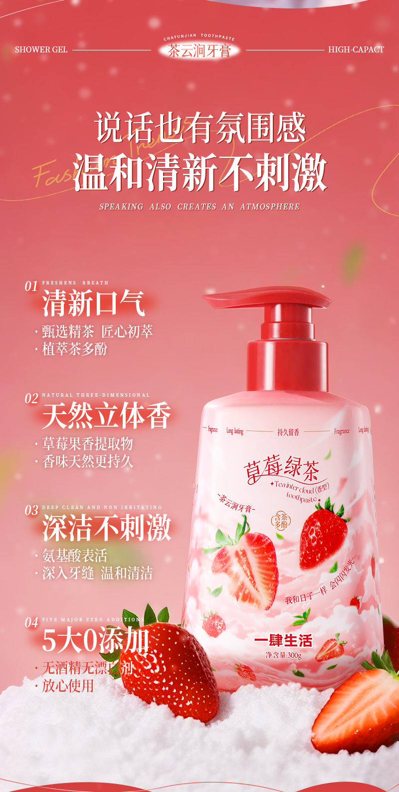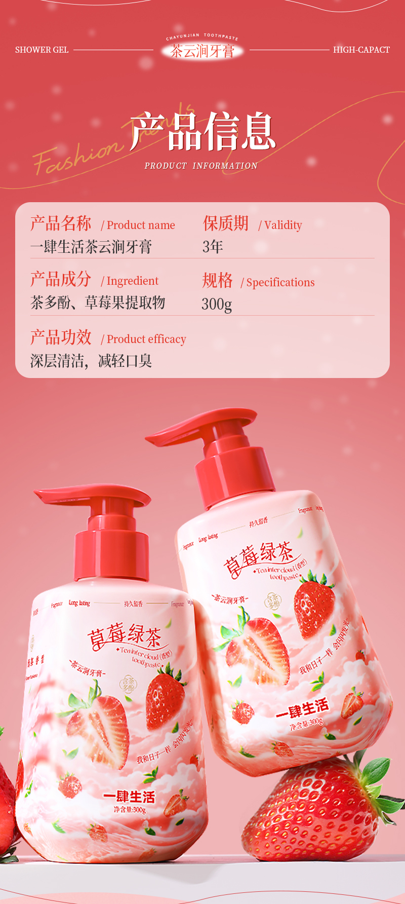 Press on Strawberry Green Tea Fruit Toothpaste 300 g