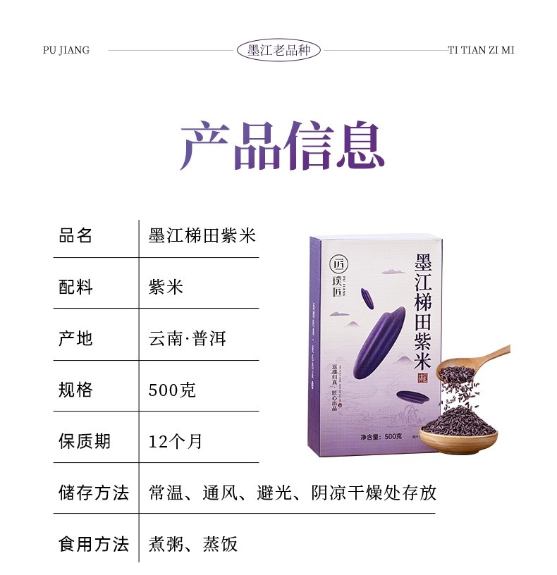 Pujiang Mojiang Terraced Purple Rice 500 g
