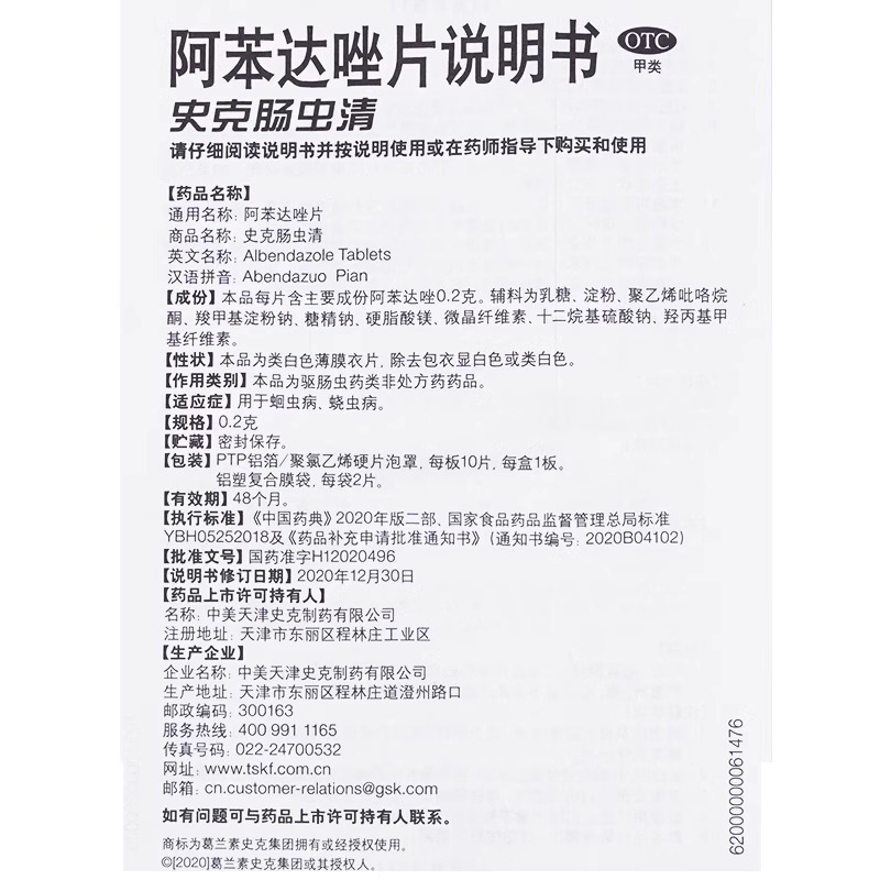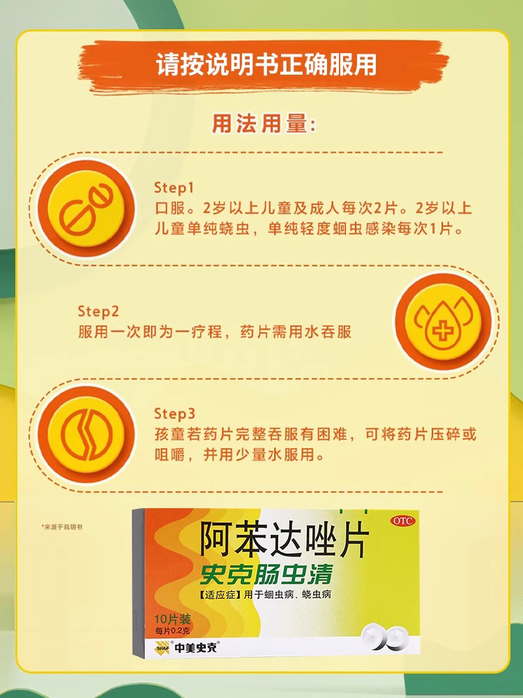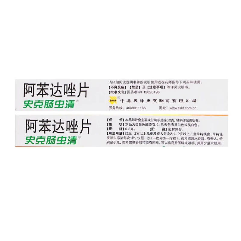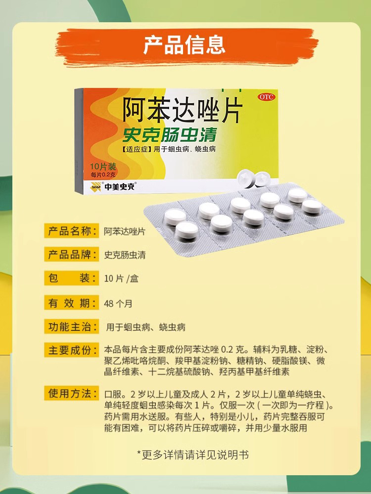 史克腸蟲清 阿苯達唑片 兒童成人磨牙 10片 1 盒