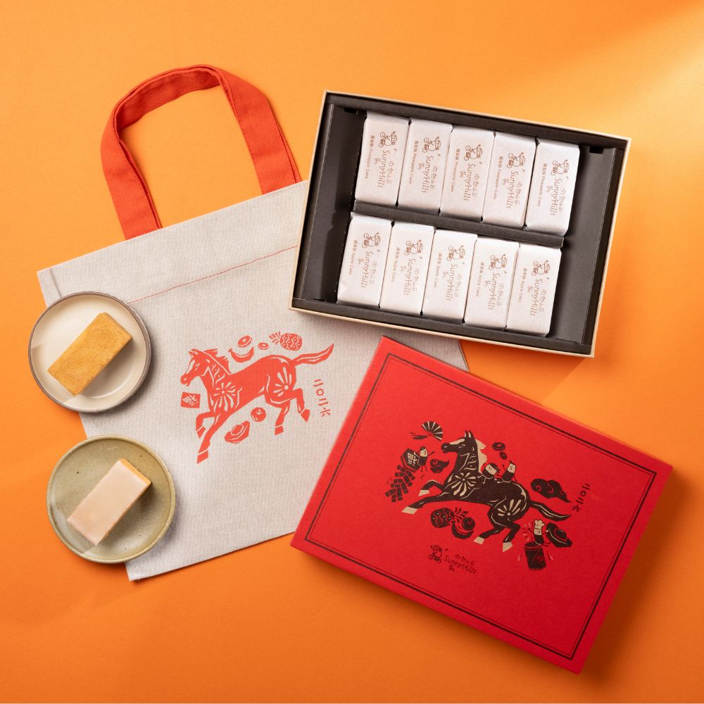 CNY gift box consists of Pineapple Cake 5pcs, Apple Cake 5pcs, and a limited edition Year of the Snake reusable linen totebag.